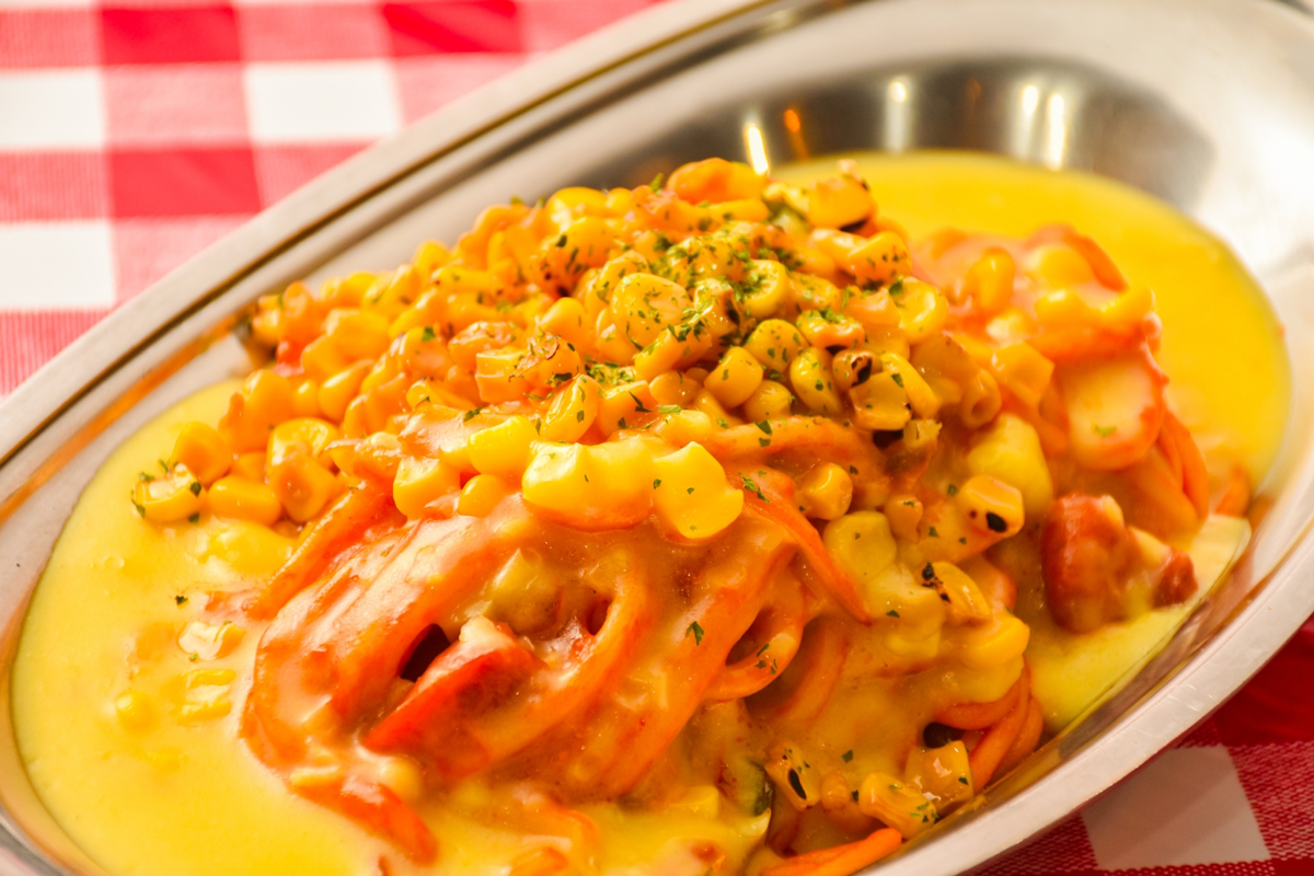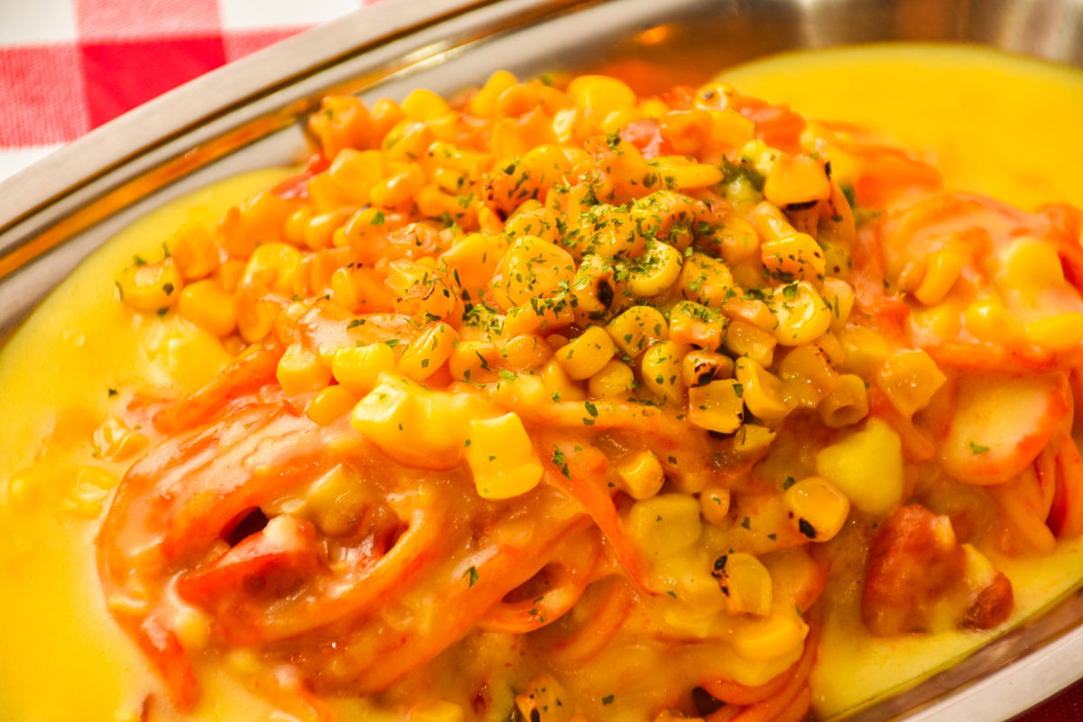 冬のパンチョ名物として毎年大人気のシチューナポ。今年の冬限定メニュー「コーンシチューナポ」は北海道産100%のスイートコーンと生乳を使い、甘さとコクを最大限に引き出したコーンクリームシチューを太麺ナポリタンにたっぷり注ぎました。ナポリタンとクリームシチューの相性の良さはナポリストにはもはや常識ですが、今年は「ナポリタンの飲み物化」にもチャレンジ。さらに醤油バターのコーンソテーをトッピングし、やさしい甘さと香ばしさの粒々コーンを存分に堪能できる冬の風味に仕上げました。