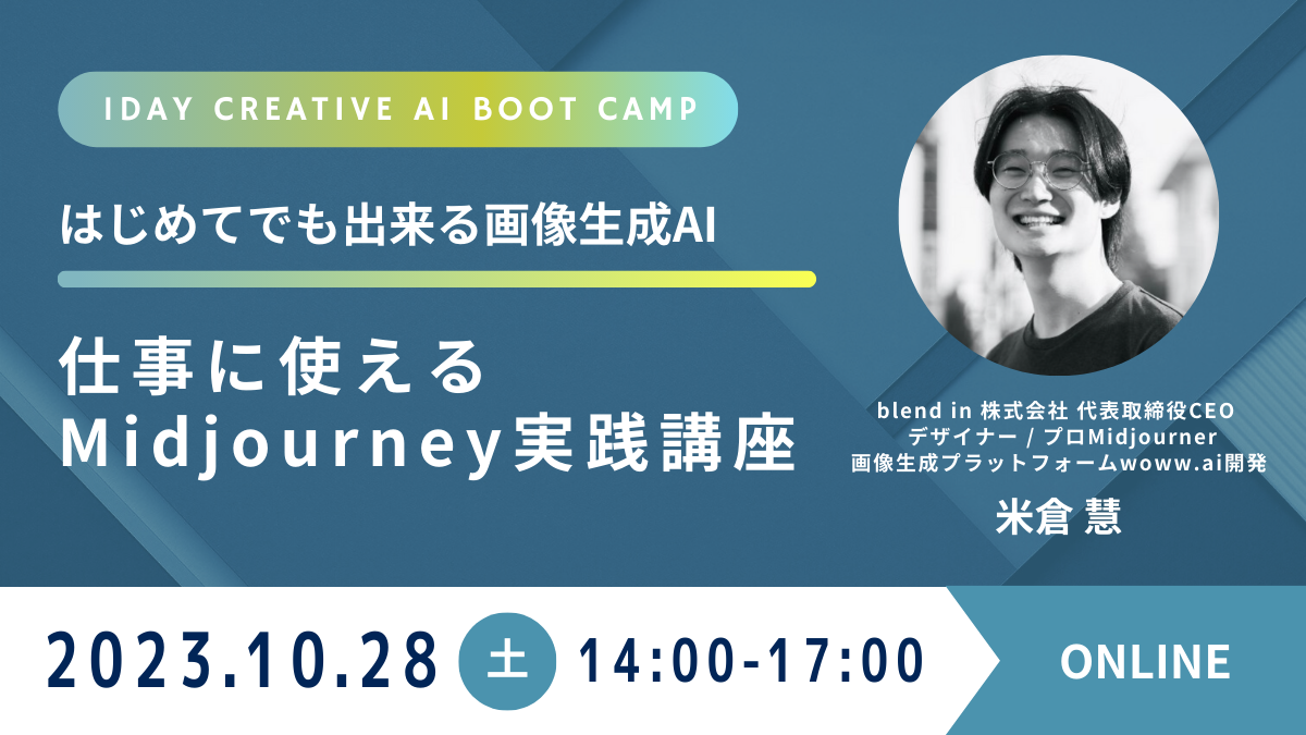第一弾は10月28日(土)、11月3日(金・祝)に開催される、プロMidjourner・米倉慧氏による、画像生成AI「Midjourney」の2講座。