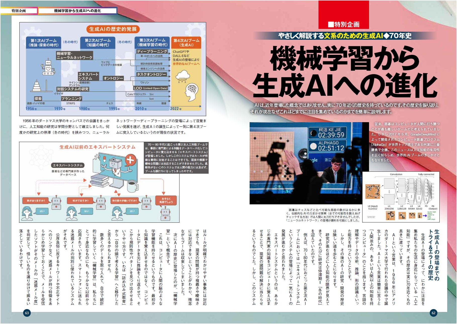 ChatGPTとは何か、どのように使えば効果的なのかを徹底解説。最新の技術背景とともに、これからのAI活用の可能性を見据えたインサイトを提供します。また、業務効率化やビジネスの現場でAIがどのように貢献しているかを紹介。歴史から解説し文系の読者にも理解しやすい誌面を心がけました。