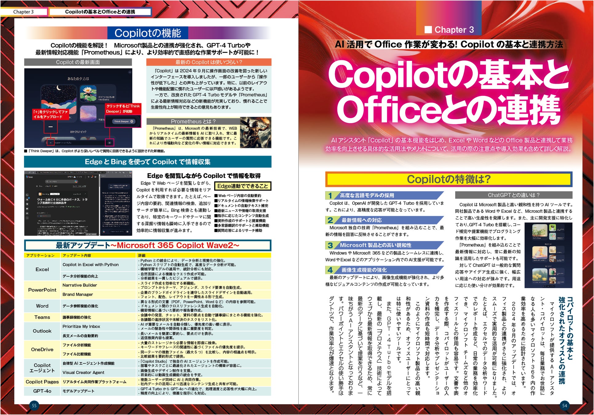 Copilotは、Microsoft Office製品(Word、Excel、PowerPointなど)にAIの力を組み込み、日常業務を効率化するための強力なツールです。Copilotは、ユーザーの指示に基づき、データ分析、ドキュメント作成、プレゼンテーションの作成などを迅速に支援します。複雑な操作もシンプルな指示で実行できるため、非技術者でも簡単に使いこなせます。