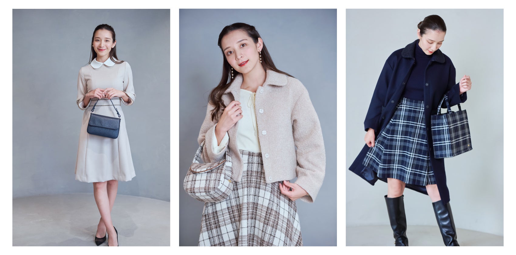 バッグからお洋服まで、キタムラだからこそできるトータルコーディネートをより楽しんでいただくため、2022年秋冬コレクションより、若年層をターゲットとしたお洋服のニューライン〈Kitamura -New Label-〉がデビューしました。キタムラのコンセプトである‟やさしさ、かわいらしさ、上品さ”を残しつつ、「後ろ姿まで可愛い」さりげないデザインをプラスしたシンプルなデザインとシルエットの美しさで、長くたのしんでいただけるようこだわっています。