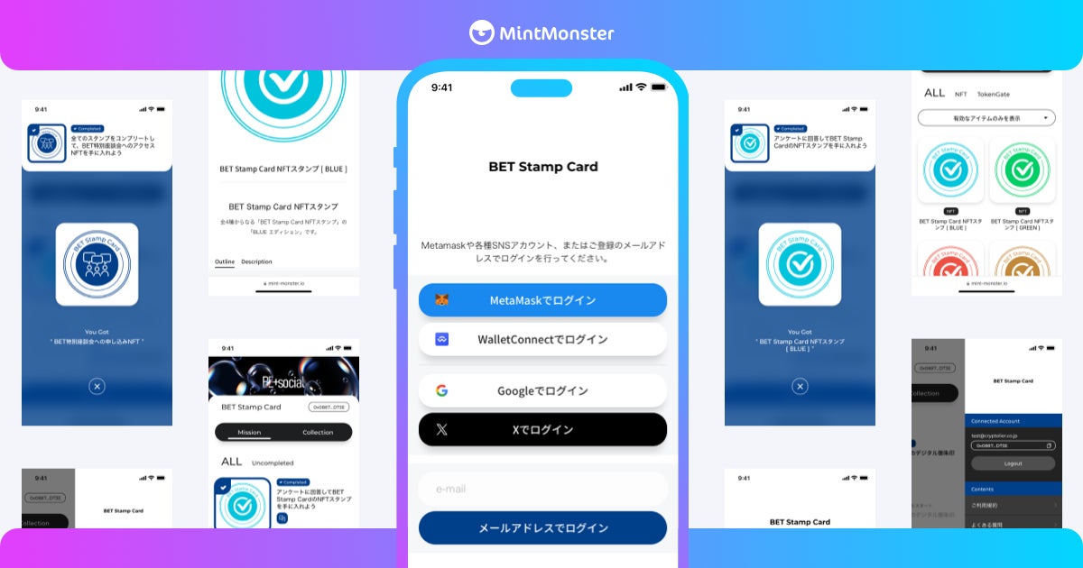 「MintMonster」は企業によるNFTのビジネス活用を、簡単かつ迅速に実現するプラットフォームです。NFTを簡単に配布・受取できることはもちろん、NFTを活用するための多彩な機能や、施策の詳細な効果測定ができる管理機能により、NFTのビジネス活用の成果を最大化します。ファンマーケティング、地方創生・地域活性化、店舗マーケティング、社内マーケティングなど、さまざまな場面でご活用いただけます。