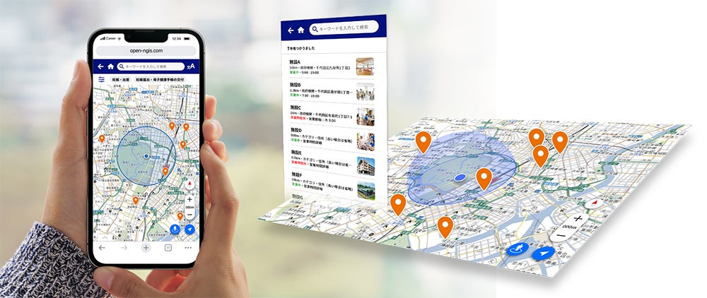 そこで当社は、「すべての住民の暮らしに役に立つ住民向けの情報発信マップ」をコンセプトに、約140団体のGISパッケージ導入実績で培った知見・ノウハウを生かし、鮮度の高い情報発信を支援するとともに、住民目線で利用しやすい本サービスを開発しました。
