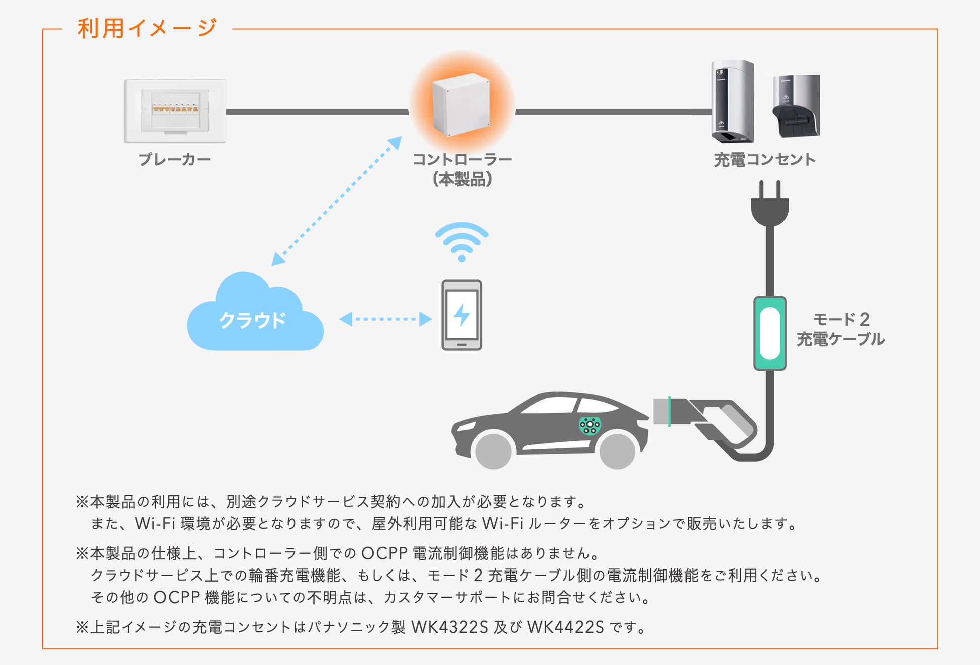 また、従来までの充電コンセント用のコントローラーは、複数台対応の高価なコントローラーを分電盤に設置する形式が一般的でしたが、本製品は1台からでも設置が可能で、後付けや増設にも対応可能なため、容易かつ安価に導入が可能となりました。