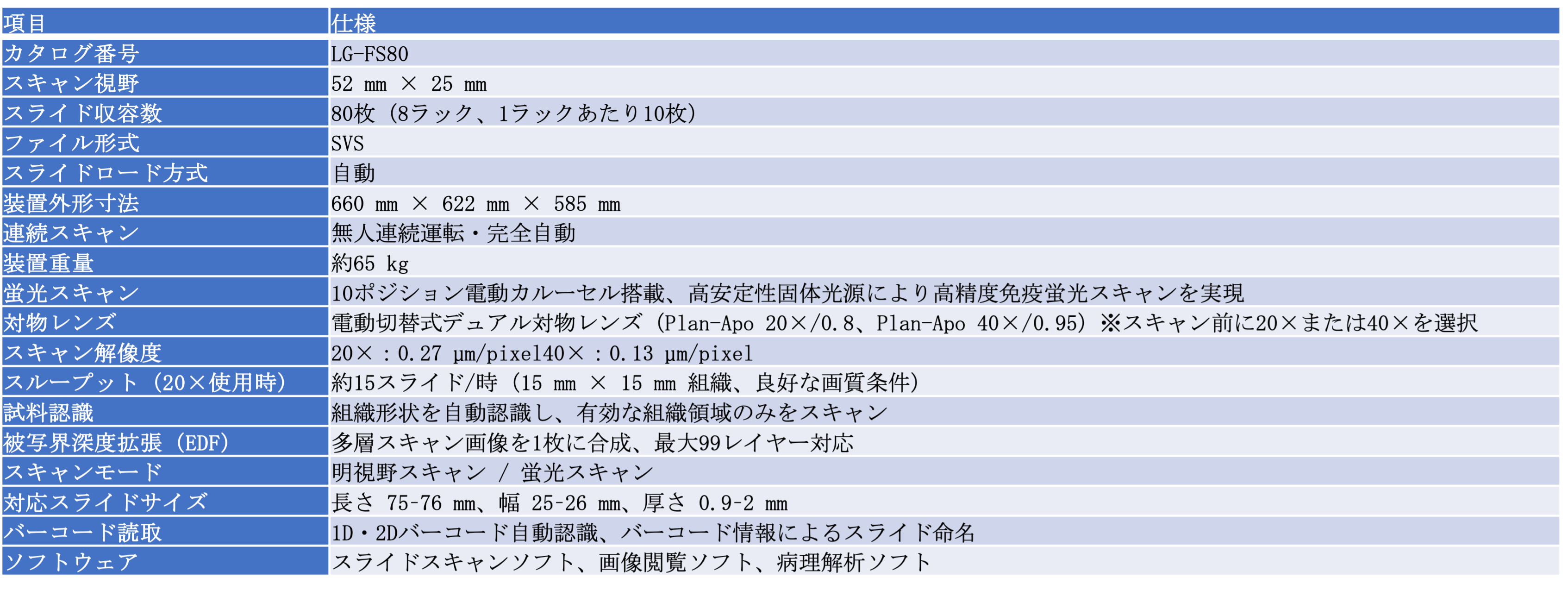 一方で、厚切片や大型組織、蛍光多重染色試料のデジタル化は依然として技術的ハードルが高く、研究者の負担となっていました。LG-FS80は、こうした課題に対し、光学設計・スキャン方式・ソフトウェアを一体で最適化することで応える製品です。