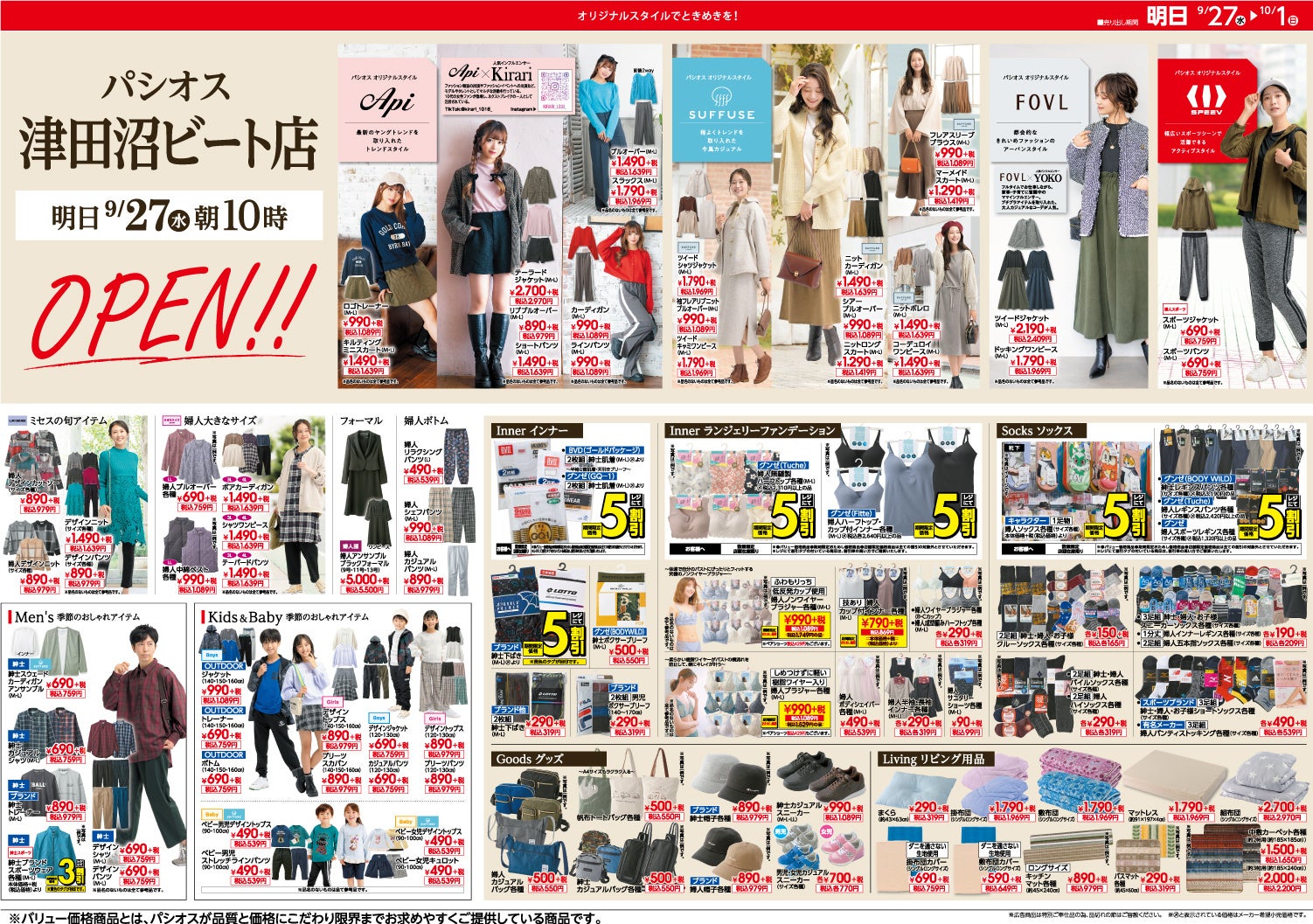 パシオスは、婦人・紳士・お子様のファッション衣料から服飾雑貨、肌着・ランファン・靴下・リビング用品まで多彩なアイテムを取り揃えたお店です。さまざまなオリジナルスタイルでトータルコーディネートを楽しんでいただける、価値あるアイテムをお求め易い価格にてご提供いたします。