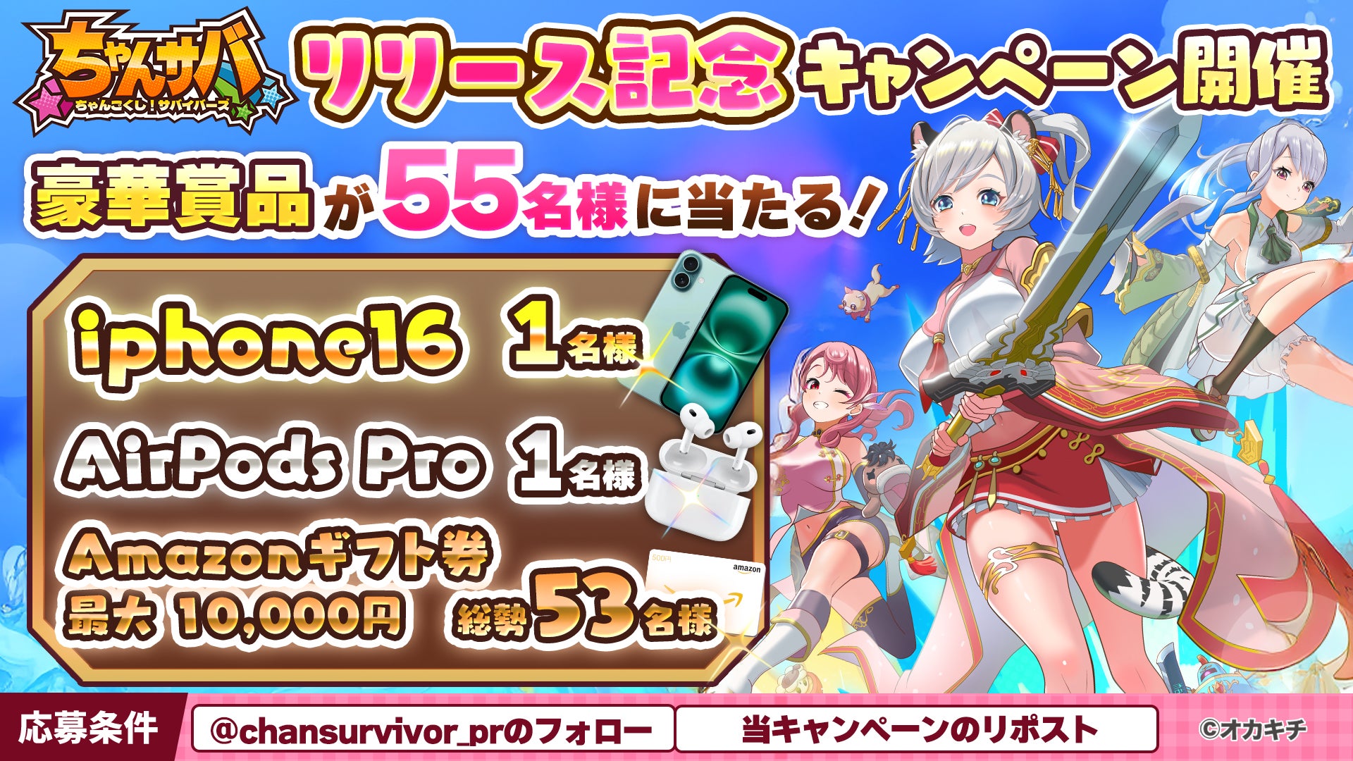 公式Xでは、iPhone16、AirPods Pro、最大1万円分のAmazonギフトコードなど、豪華賞品が総勢55名様に当たる「リリース記念プレゼントキャンペーン」を開催中です。