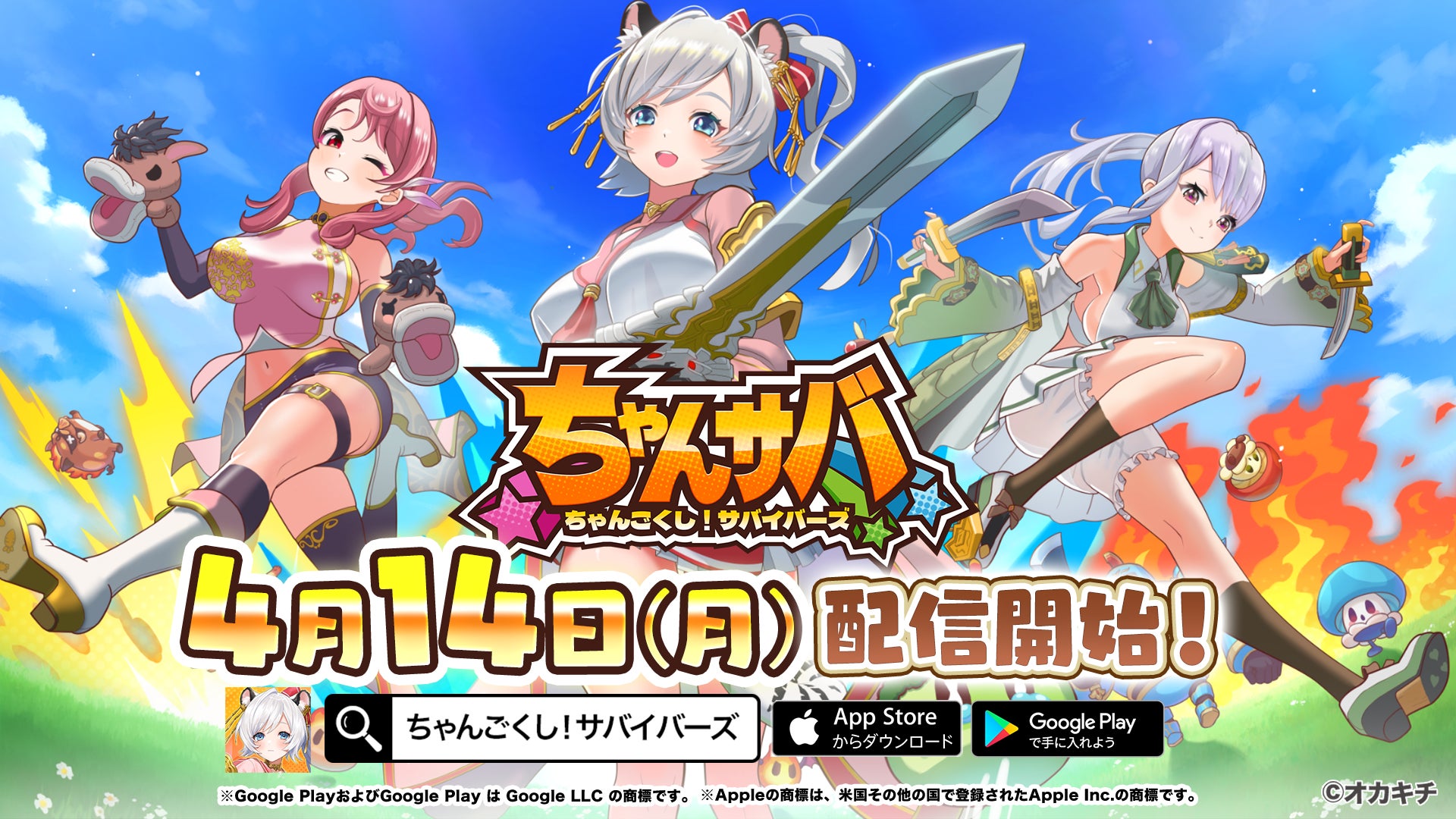 「次の夢中をつくる会社」をポリシーに、数々の人気ゲームの開発を担う株式会社オカキチ(本社:東京都渋谷区、代表取締役:岡田茂)は、オリジナルNFTゲーム「ちゃんごくし!」シリーズの第三弾タイトル『ちゃんごくし!サバイバーズ』を、App Store、Google Playストアにて4月14日(月)より配信開始しました。
