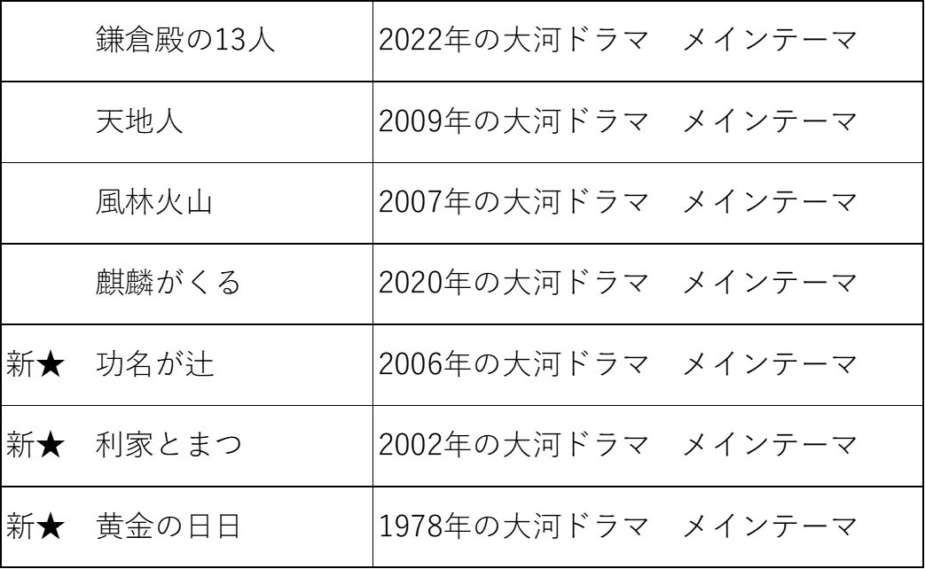(功名が辻、利家とまつ、黄金の日日)も含まれ、さらに