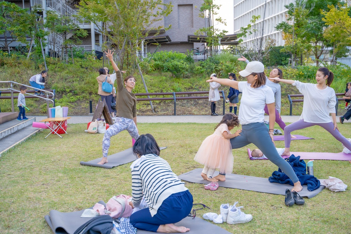 一方で、大人の出店テントやキッチンカー、ヨガ等のアクティビティも、こどもと同数の34の出店があり、こどもエリア同様に賑わいました。大人エリアは、一緒に来た保護者や偶然立ち寄った大人も含めて“共主体”でマルシェを楽しめるように、また、プロのお店やさんの背中を見てこどもたちが学べるようにという意図で導入しました。