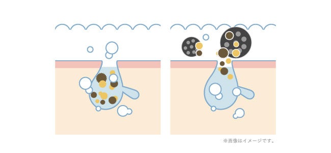 この黒い泡は竹炭*¹によるものであり、濃密炭酸泡と共に毛穴汚れに密着し、奥の汚れを吸着して落とす効果を発揮します。
