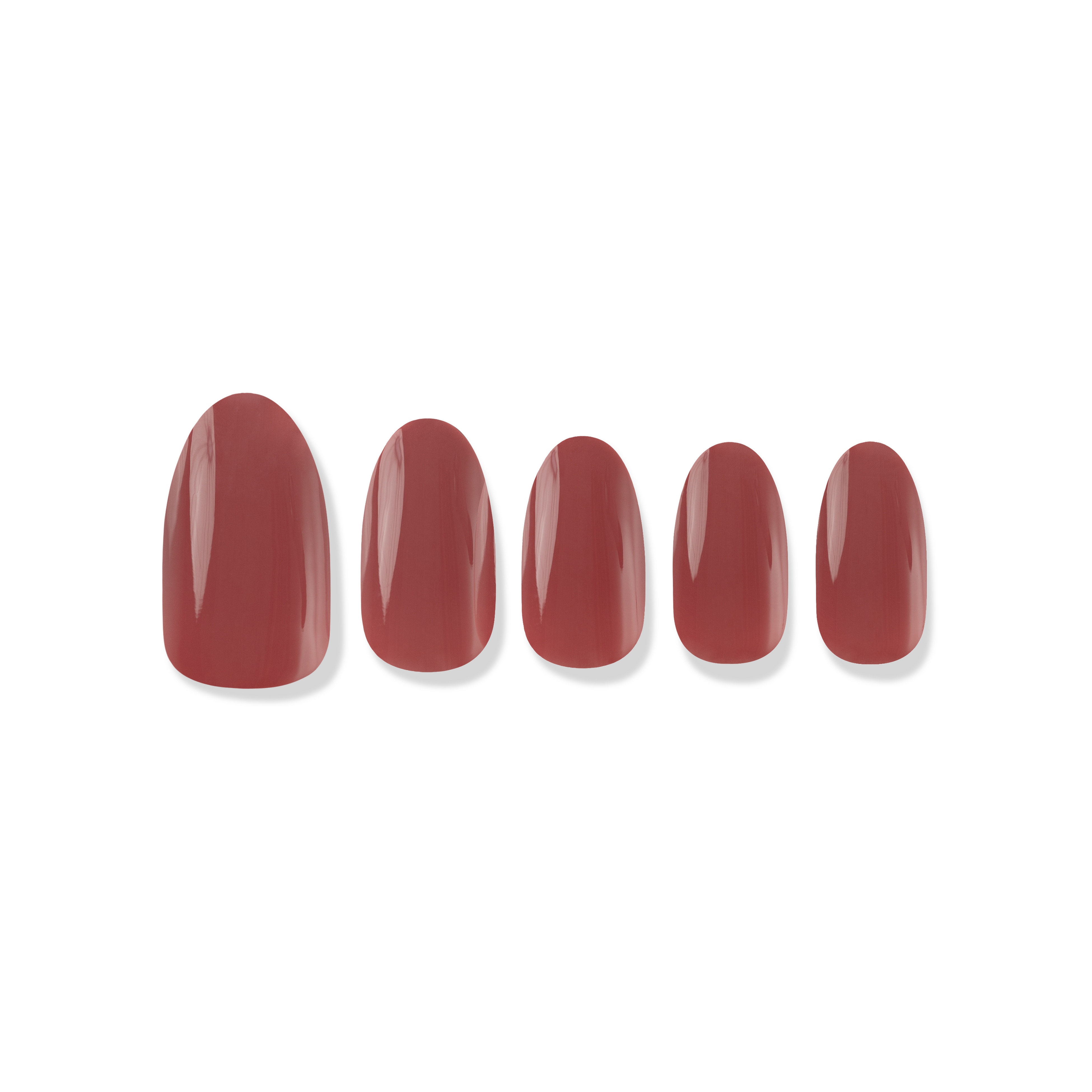 ピンクとレッドの間のような、茶色がかった絶妙レッドが秋にぴったりのフルカラーネイル。