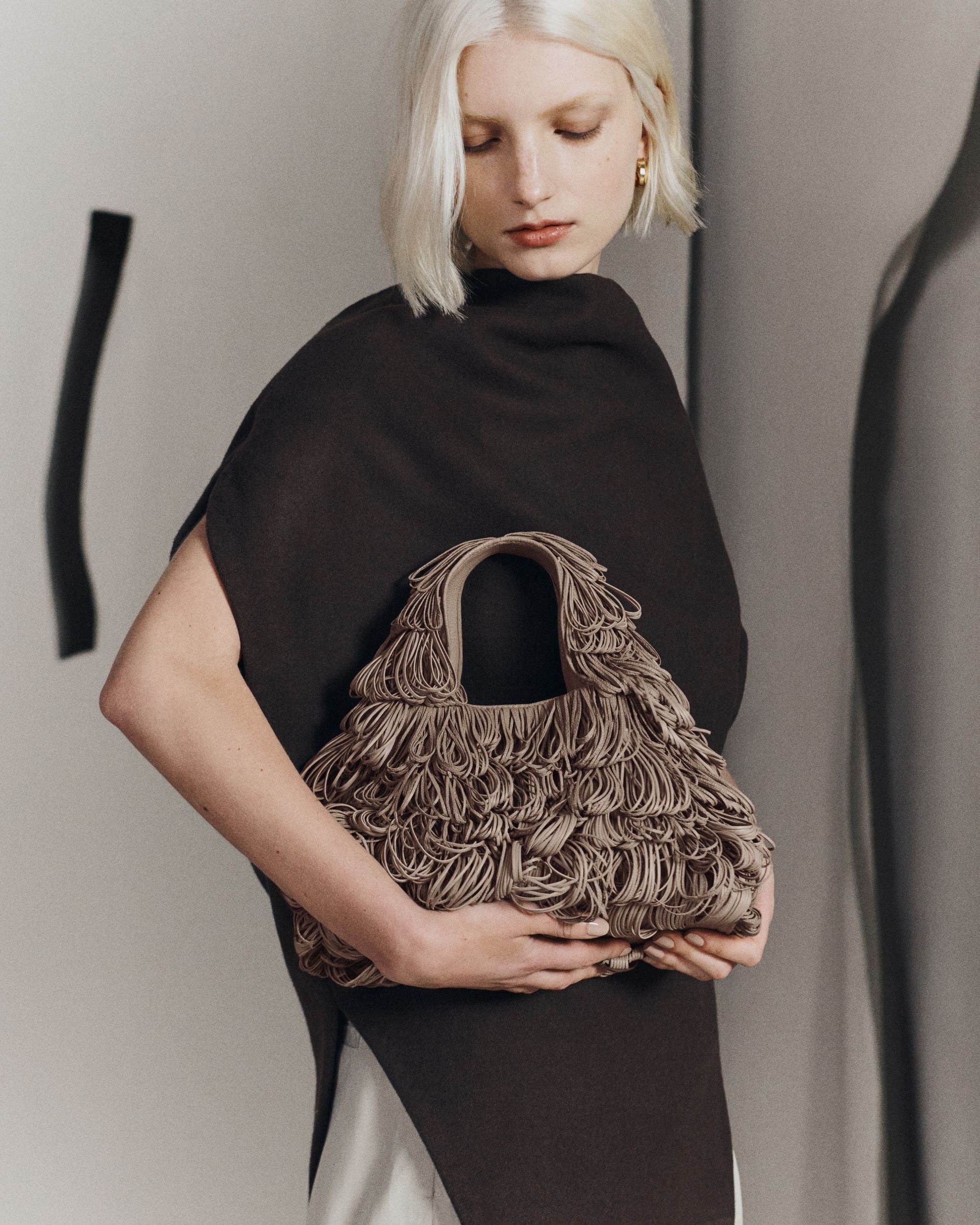 その形と名前は「Willow(ヤナギ)」の木の優雅な形状に由来。肩にかけて、腕に抱えて、または手に持って持ち歩くことができ、歩くたびにフリンジが揺れ、風になびくヤナギの葉のように美しい表情を見せてくれます。