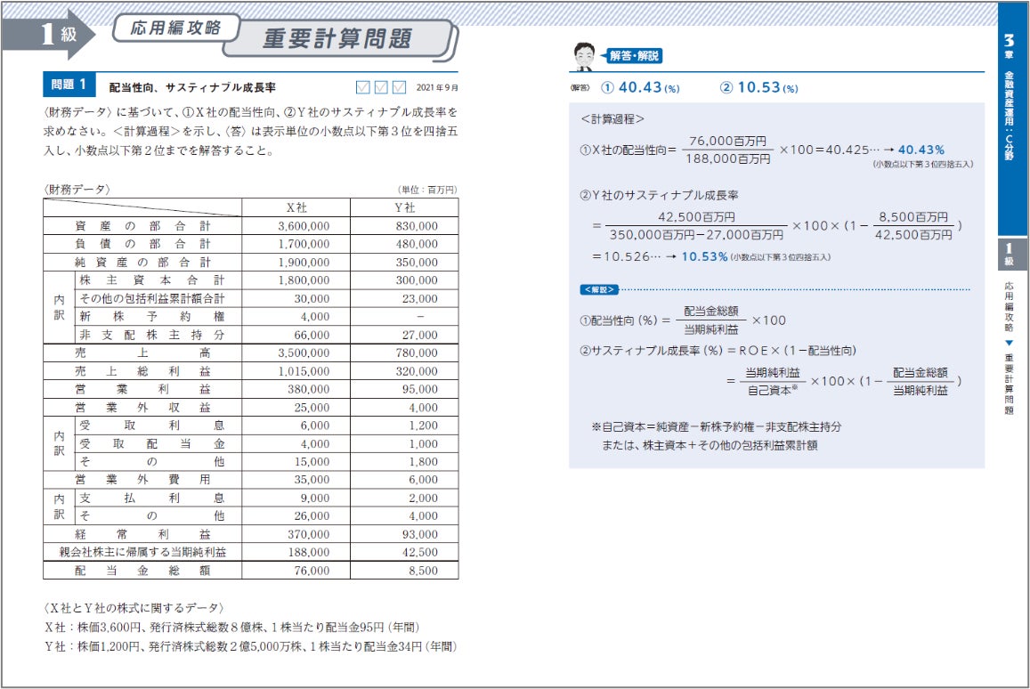 応用編で大きな点数を占める計算問題では、直近の過去の出題パターンを網羅できる全40問を掲載。過去の本試験に出題されたほぼすべての問題パターンに触れられよう問題の選定・アレンジを行っているため、膨大な過去問すべてを解かなくても、最短効率で計算問題を理解できます。
