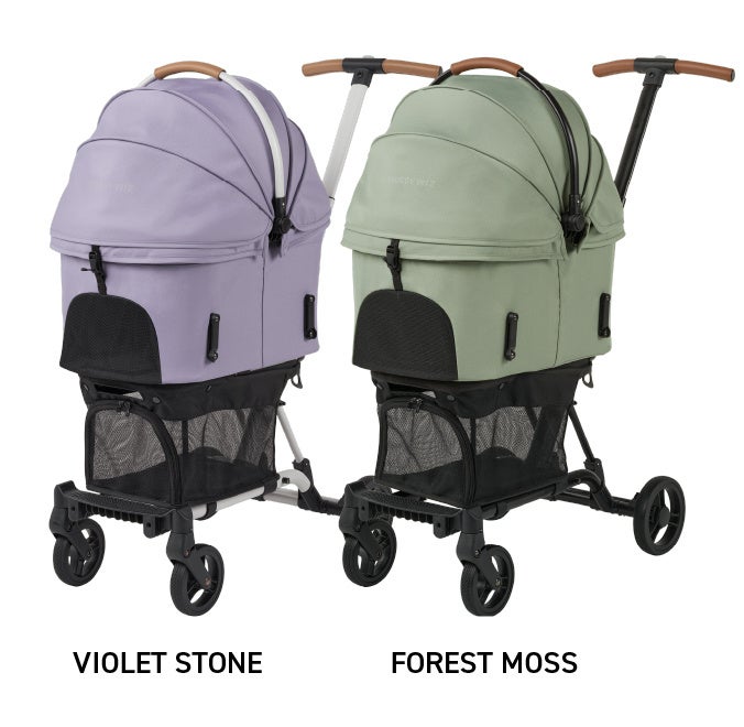 コットのカラーに合わせて、VIOLET STONEにはホワイトフレームを、FOREST MOSSにはブラックフレームをセレクト。お散歩やお買い物、車に乗って少し遠くまでおでかけする時も、見るたびにスタイリッシュなカラーバランスに気分が上がるペットカートです。