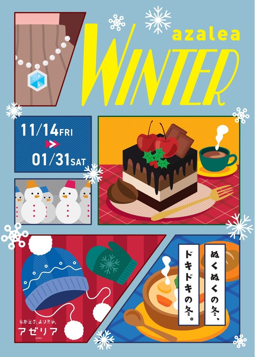 JR川崎駅と京急線 京急川崎駅直結、日本最大級の地下商業施設、川崎アゼリア(運営・管理 川崎アゼリア株式会社(神奈川県川崎市川崎区/代表取締役社長 浅岡浩))では、2025年11月14日(金)~2026年1月31日(土)までの期間、「azalea WINTER」を開催いたします。