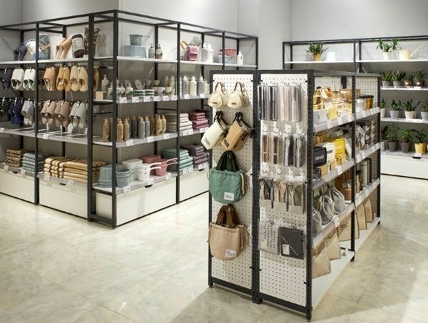 当社の事例のようにオフィスにもフィットし、 スーパーやグロッサリー、コスメ、雑貨店などの小売店舗や各種ショールームなど、幅広い業種にフィットする、当社主力のシステム什器です。