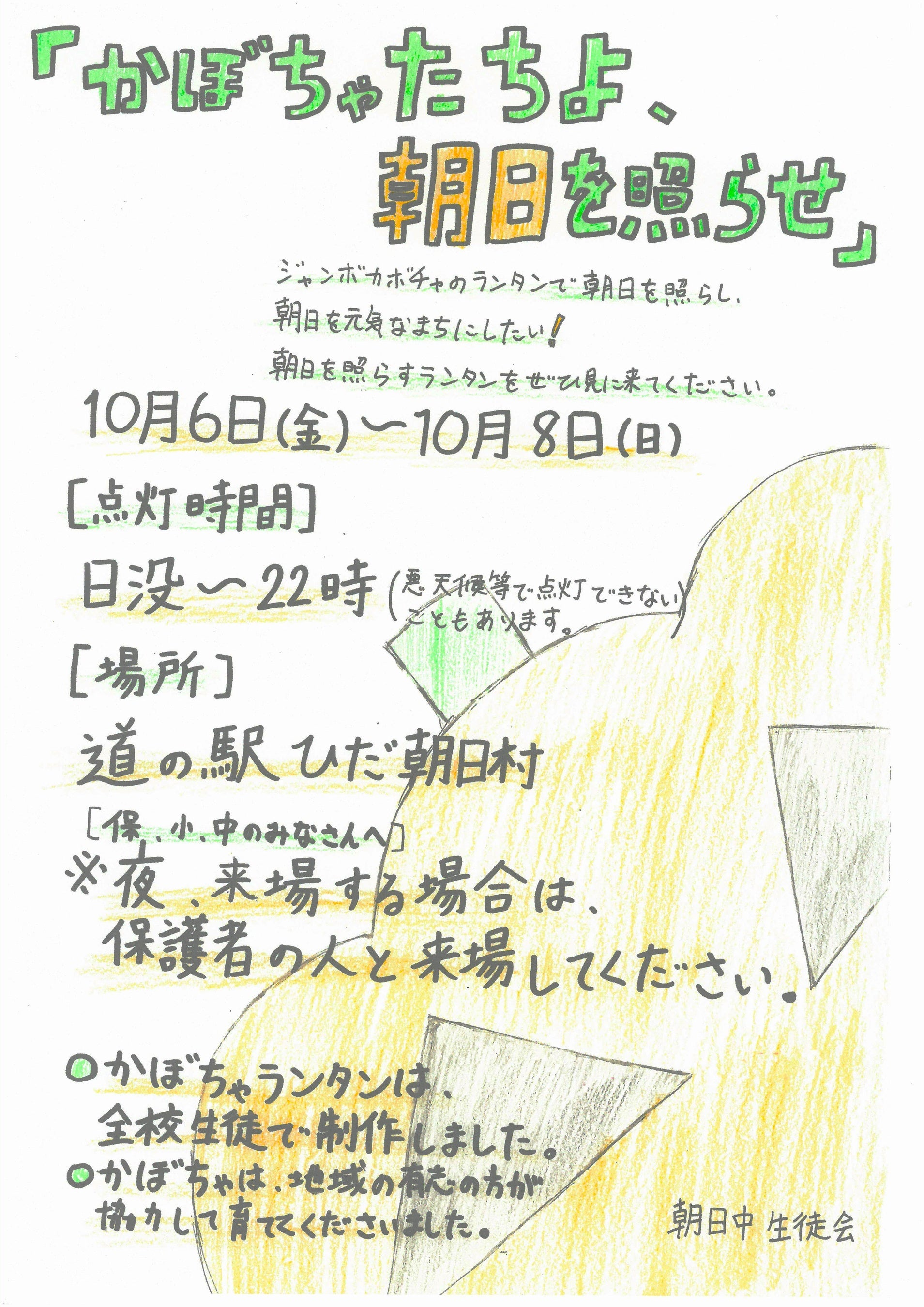 元気なまちにしたいという生徒の思いで制作したジャンボかぼちゃのランタンで、朝日地域を照らします