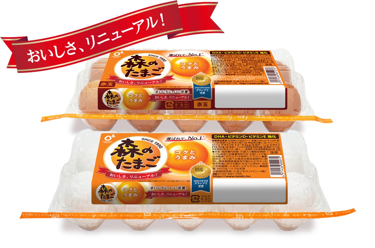 リニューアルでは、『森のたまごの良さ』『たまご本来のおいしさ』をそのまま引き継ぎながら、これまでこだわり続けてきた飼料をより良い配合に見直し、絶妙な栄養バランスを実現すること、そして持ち味である「コクとうまみ」を引き立たせることを重視しております。パッケージも、『森のたまごの良さ』が一目でご理解頂けるようにアレンジしております。