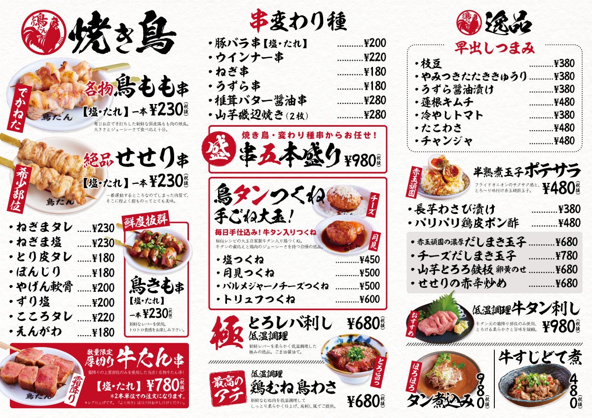 鳥たんのおすすめ料理や必食のメニューなどがラインナップした飲み放題付きコースもご用意しております!