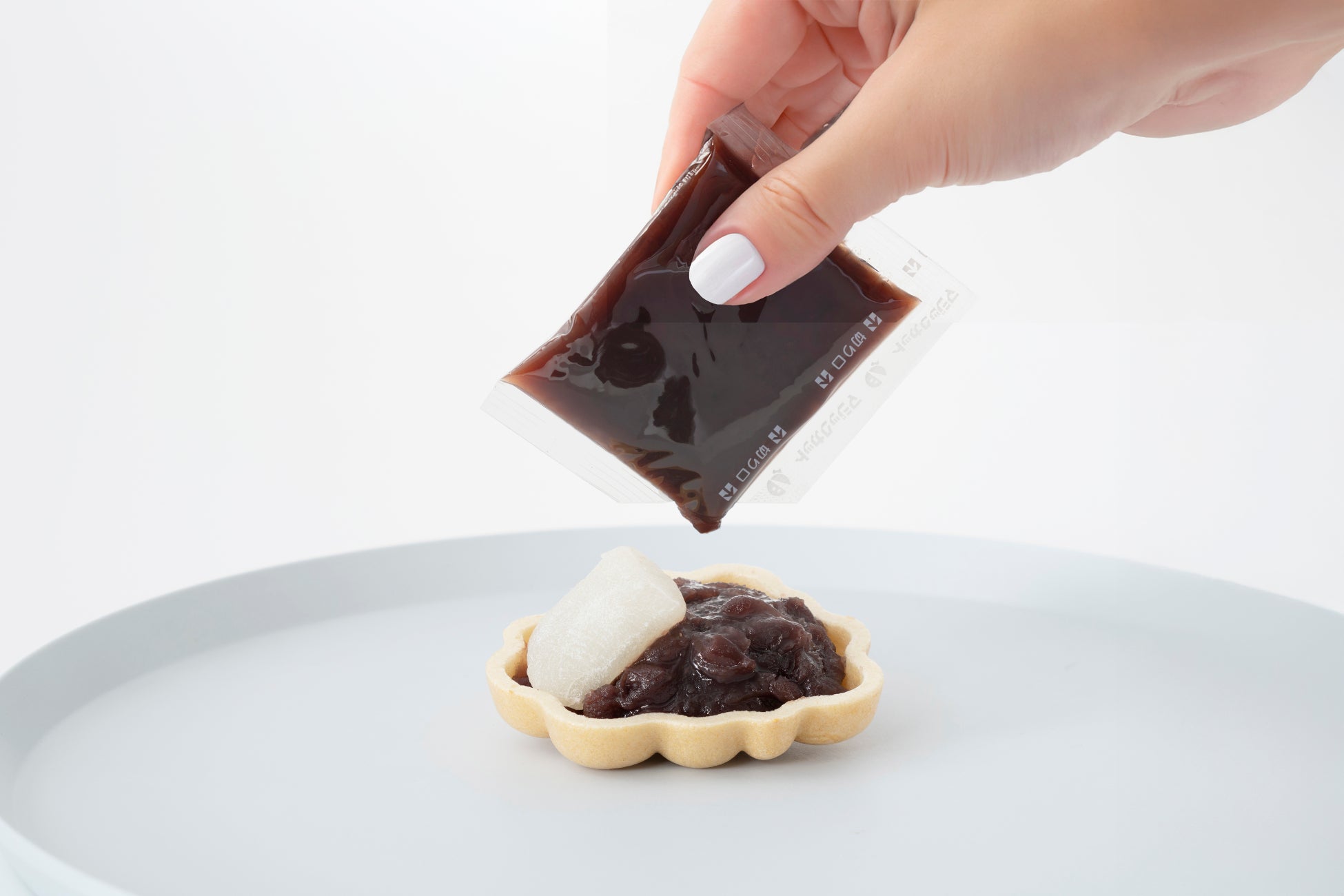 ミャクミャクもなかは、お手づくりタイプですので、お客様自身でお餅と粒あんをはさんでいただき、できたてのもなかをお楽しみいただけます。一手間かけることで、国産餅米の香ばしい風味はもちろんのこと、サクサクとした軽い食感とたっぷり入った北海道小豆粒あん、お餅との相性の良さを存分に味わってください。