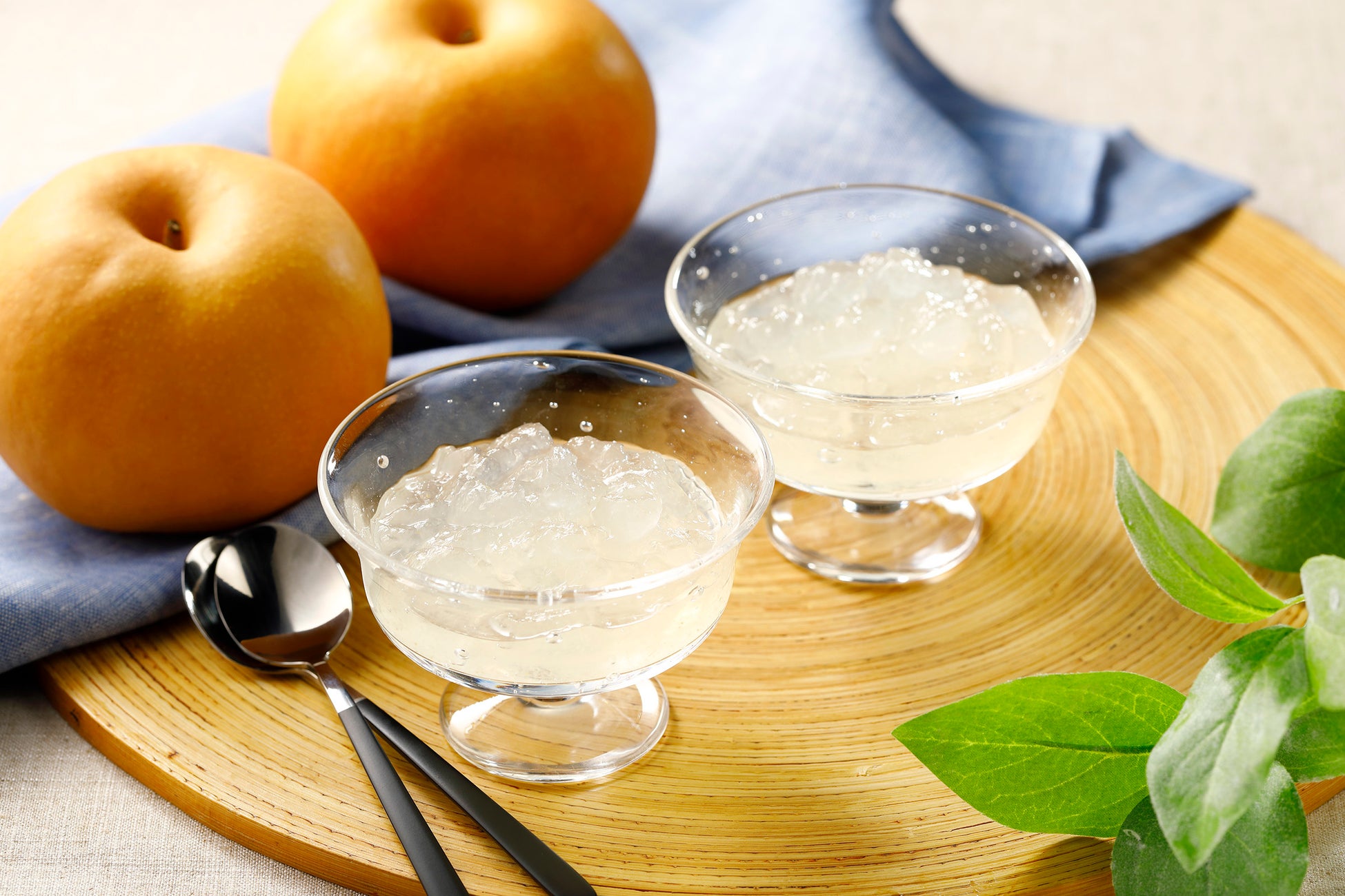 梨特有のシャリシャリ感を味わえる、千葉県産梨ピューレを使用した瑞々しいゼリーです。