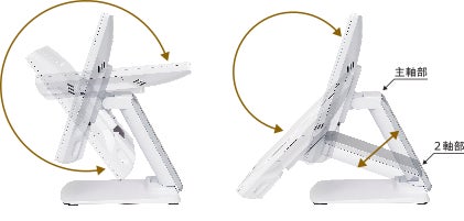 角度、高さを調整可能な2軸スタンドを標準採用しました。
