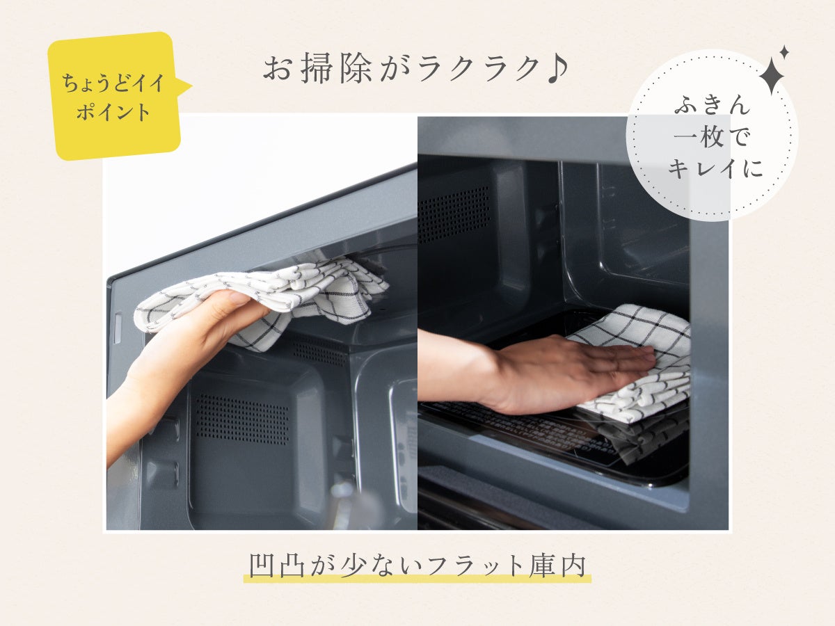 また、庫内のテーブルはフラットタイプを採用。凹凸が少ないので、サッとひと拭きでお手入れができます。