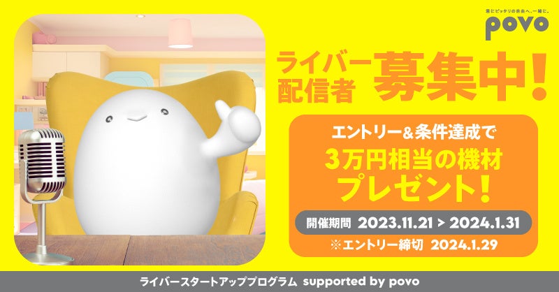 povo、ライバー/配信者向けサポートプログラム開始。3万円相当の人気ミキサー&マイクセットをプレゼント!