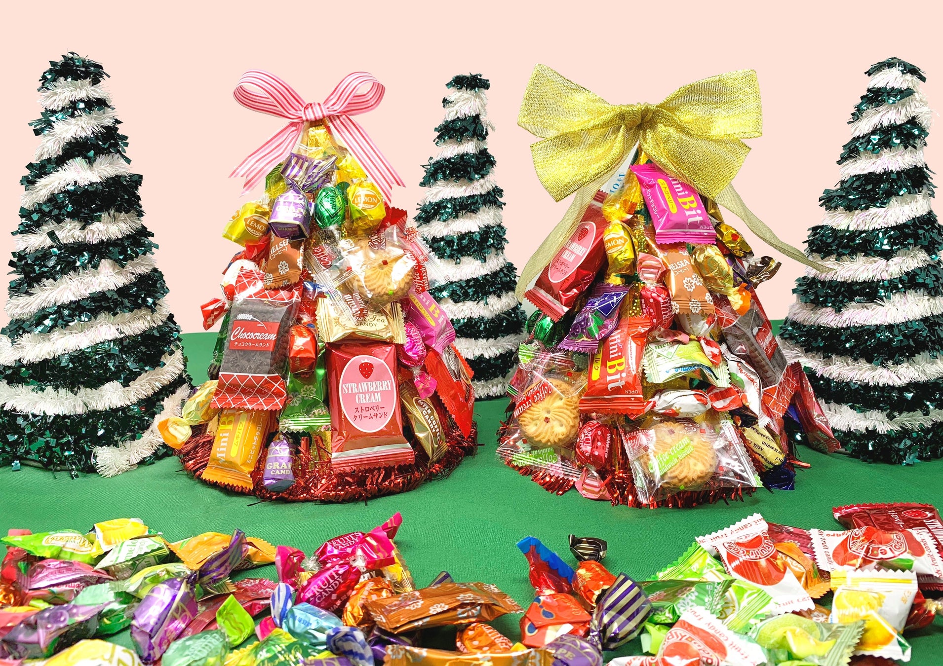 パーティーハットに好きなお菓子をたくさんつけて、「かわいい」「おいしい」クリスマスツリーが作れます。「つくって楽しい」と「おいしい」が体験できるクリスマスツリーです。