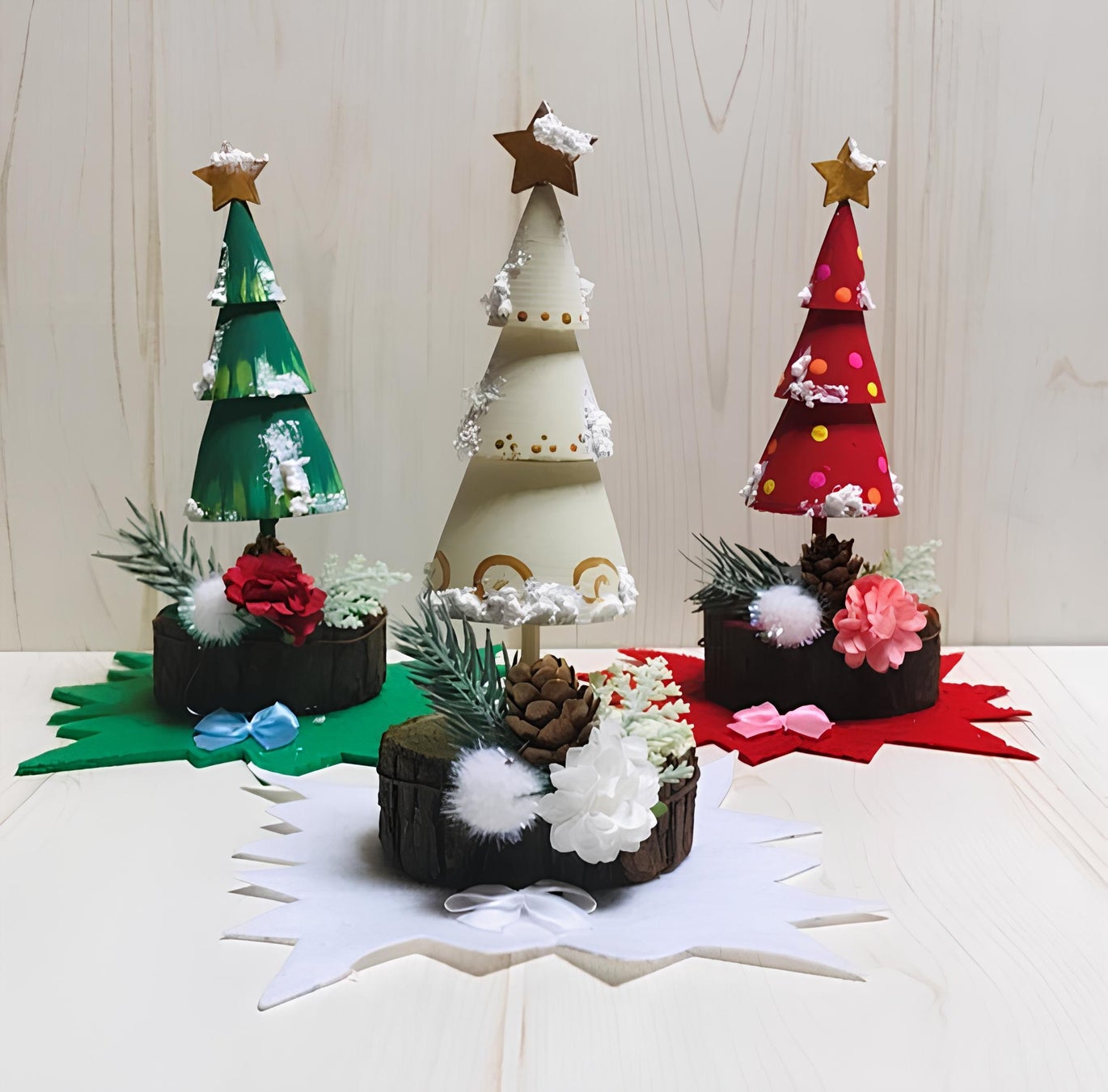 無地のログツリーに、絵付けやパーツを配置して、木のぬくもりを感じられるクリスマスのかわいい「木製ツリー」が作れます。クリスマスの時期、お部屋に飾れるオリジナル作品に仕上がります。
