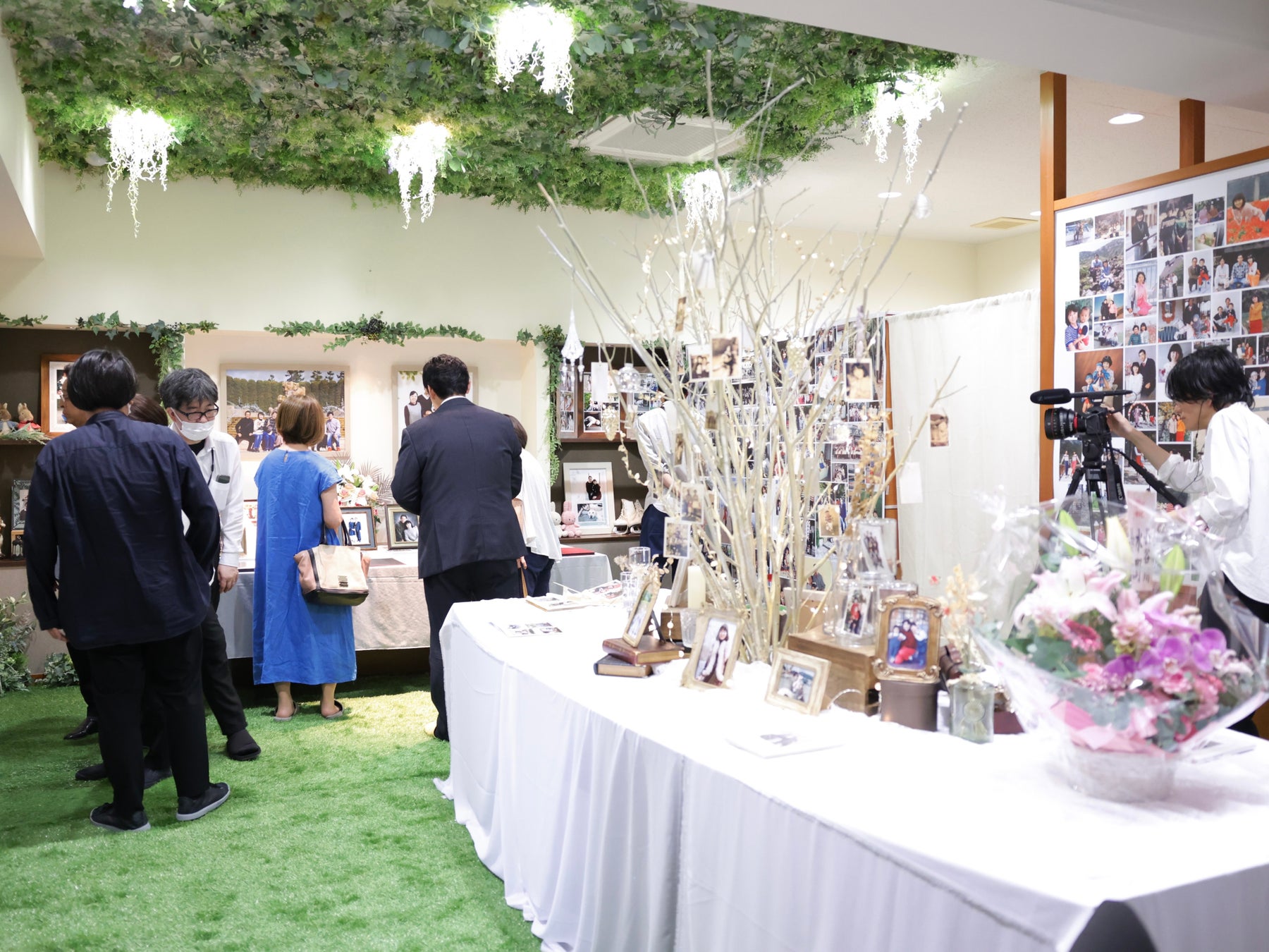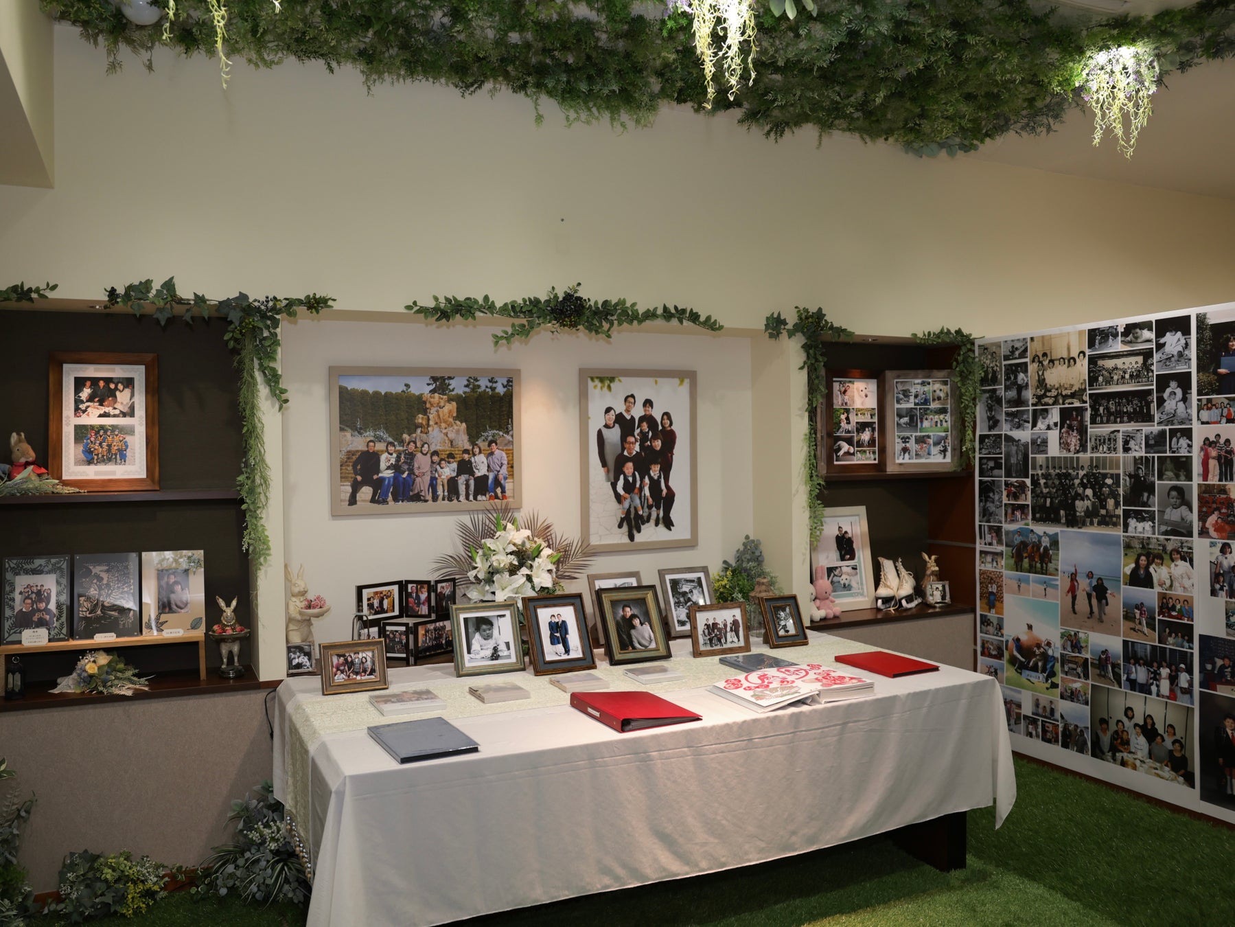 依頼者が展示対象者に関係する複数の写真を選択し、タートルのフォトスペースに展示することで、集まった家族や友人は展示対象者の生き方に触れることができ、展示対象者との会話を楽しむことができます。またタートルにとってはスタジオの空き時間や空きスペースを有効活用できる取り組みとなっております。