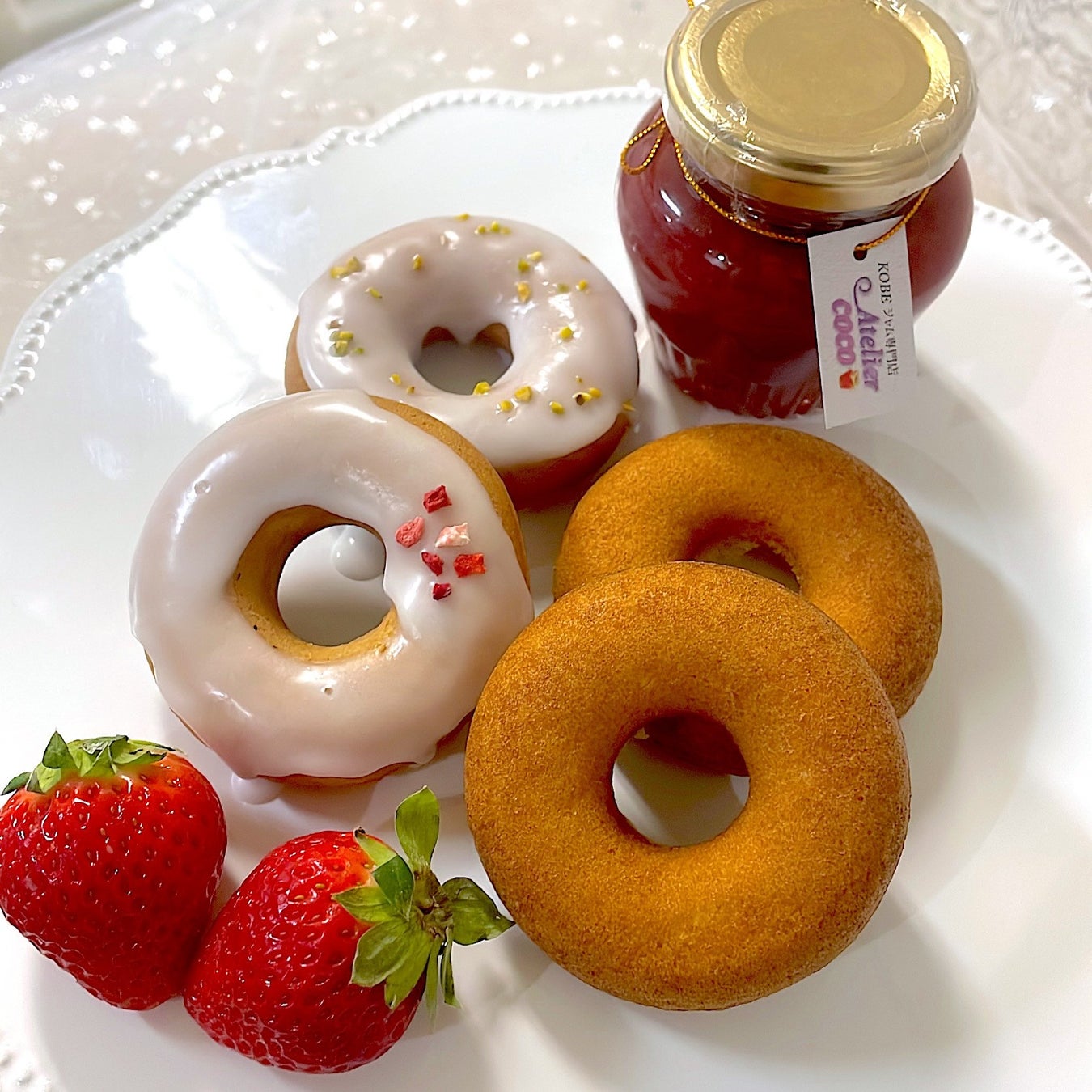 Atelier CoCo は人に贈りたくなるジャムと焼き菓子の専門店です。兵庫県産小麦ときび砂糖、よつ葉バターを使用した生地に自家製ジャムを練り込んだ焼きドーナツをご用意しました。季節のジャムもぜひご賞味ください。