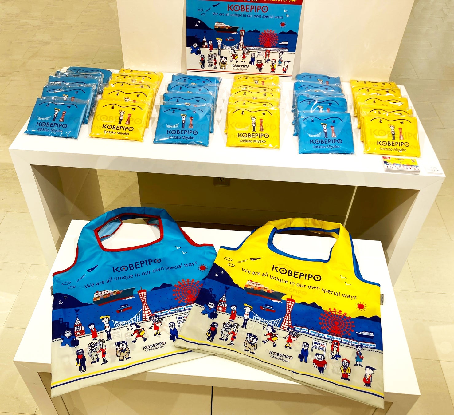神戸ご当地ブランド「コベピポ®」は神戸の名所を背景に、人と街をモチーフとしてデザインしています。「持って帰れるPOPな神戸」をコンセプトに、カラフルな色合いの大きく丈夫な生地で作ったエコバッグです。一番の人気商品です!