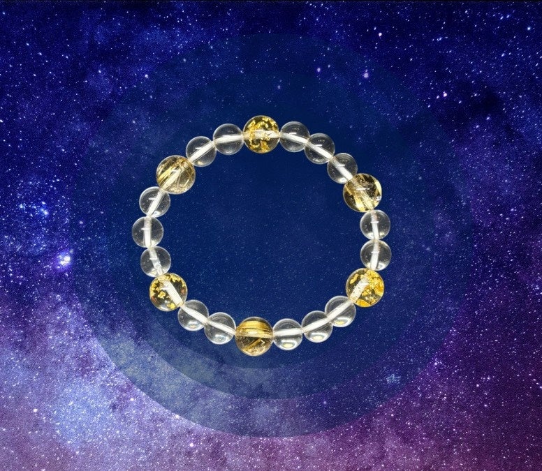 本商品は、2024年に宇宙を旅した「宇宙金箔玉」と、今回宇宙へ打ち上げを予定している「ルチルクオーツ玉」を組み合わせて誕生する、特別な腕輪です。