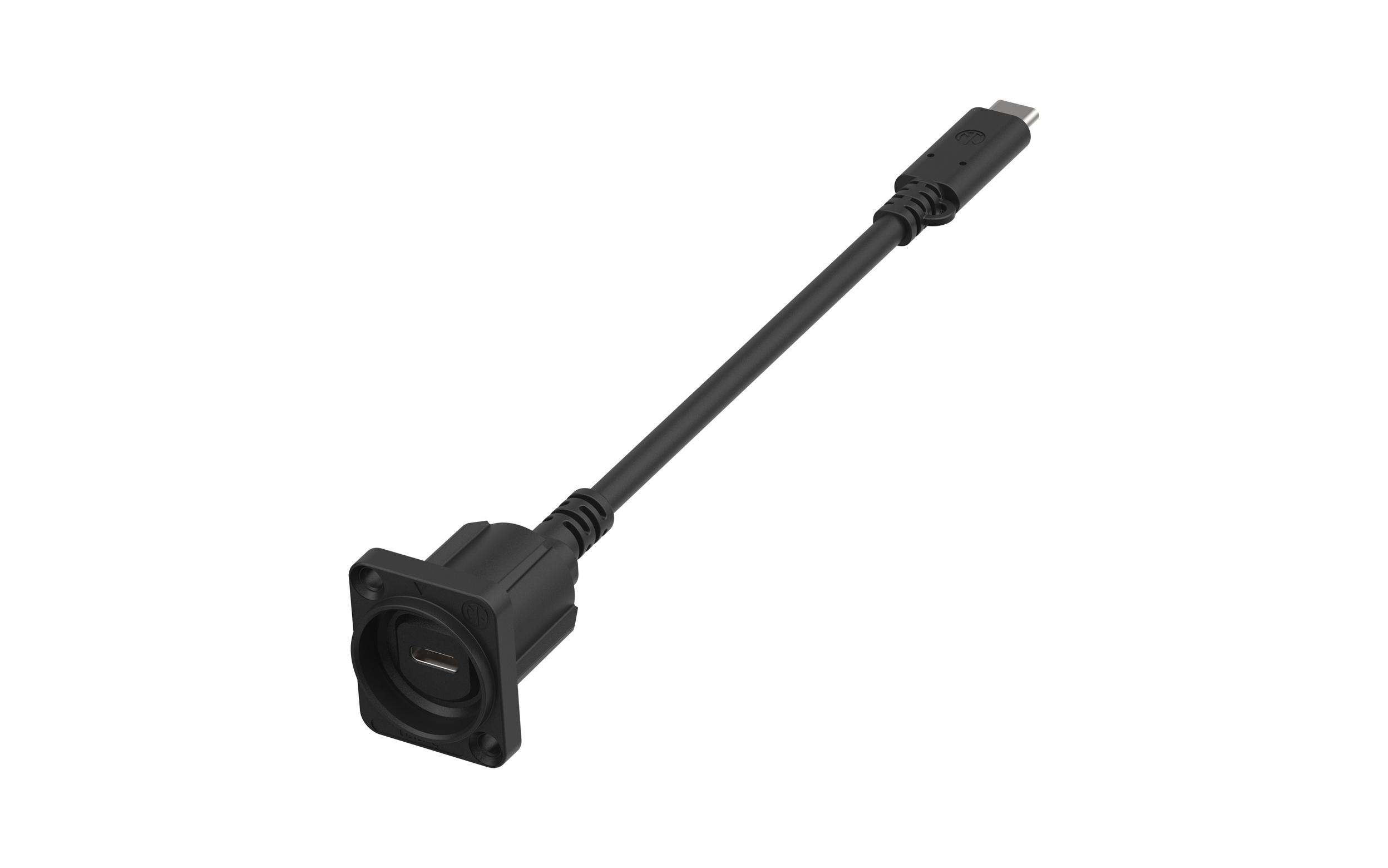 多くのユーザー様から製品化の声が寄せられていた、USB Type-Cのレセプタクル新製品を展示します。USB3.2 Gen1/5G/背面ケーブル25cm。