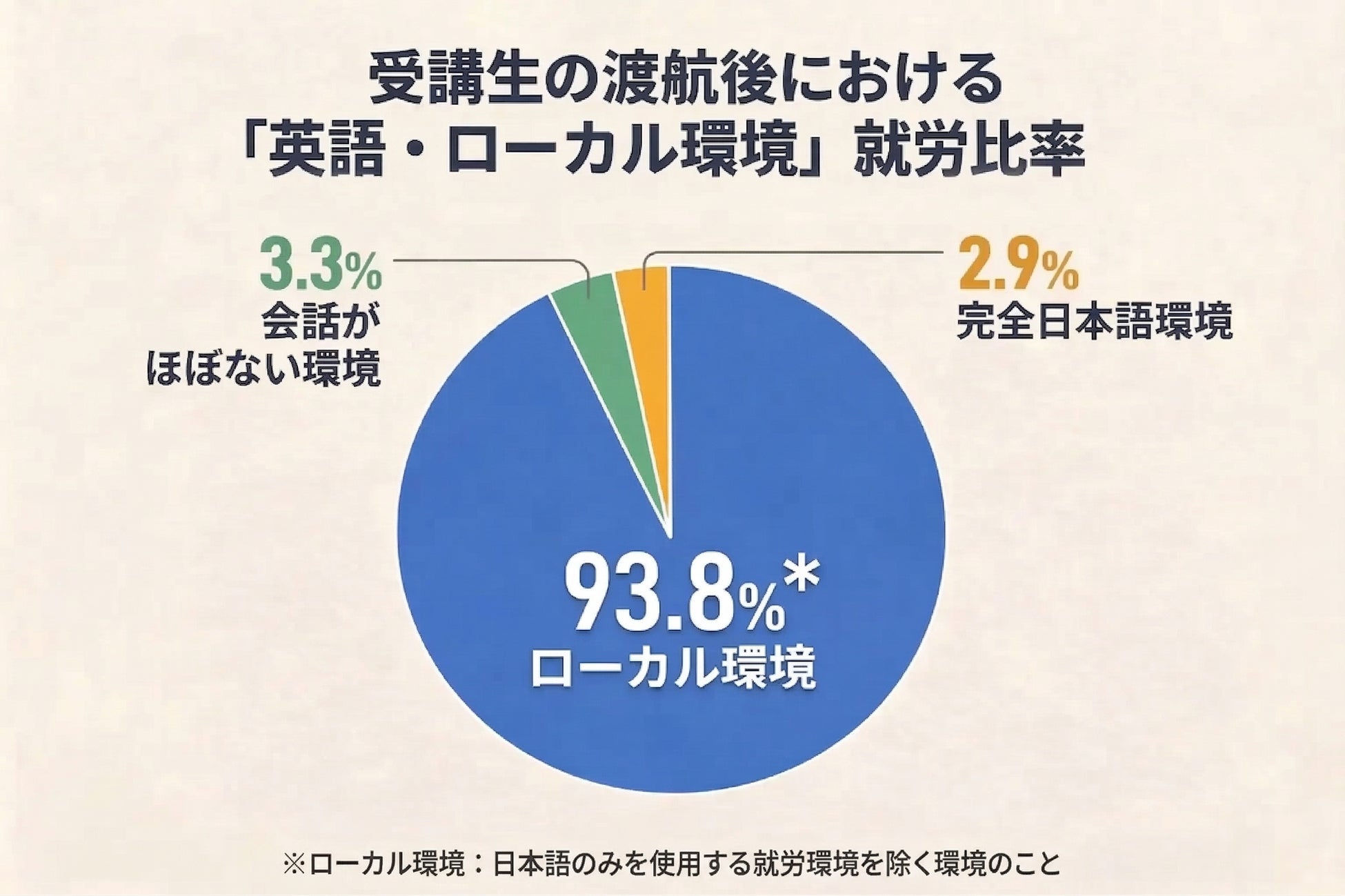 AI翻訳が普及する今、留学の価値は「英語を学ぶ」から「英語で採用される」経験へ。受講生の約9割を占める英語初心者の海外キャリアを支える、対人英語・現地就労コーチングの実績を公開。(※1)