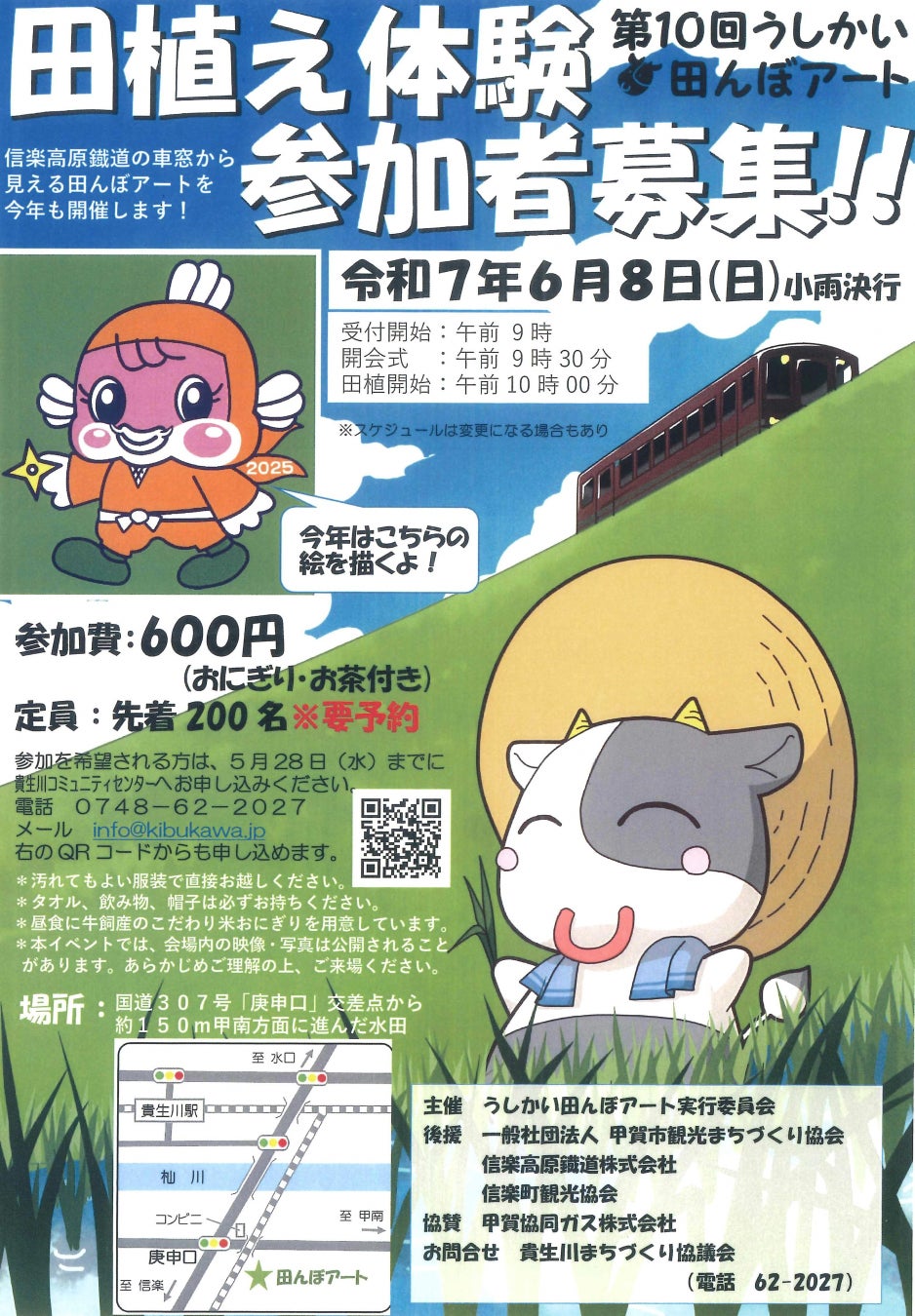 第10回うしかい田んぼアート田植え体験参加者募集中です。