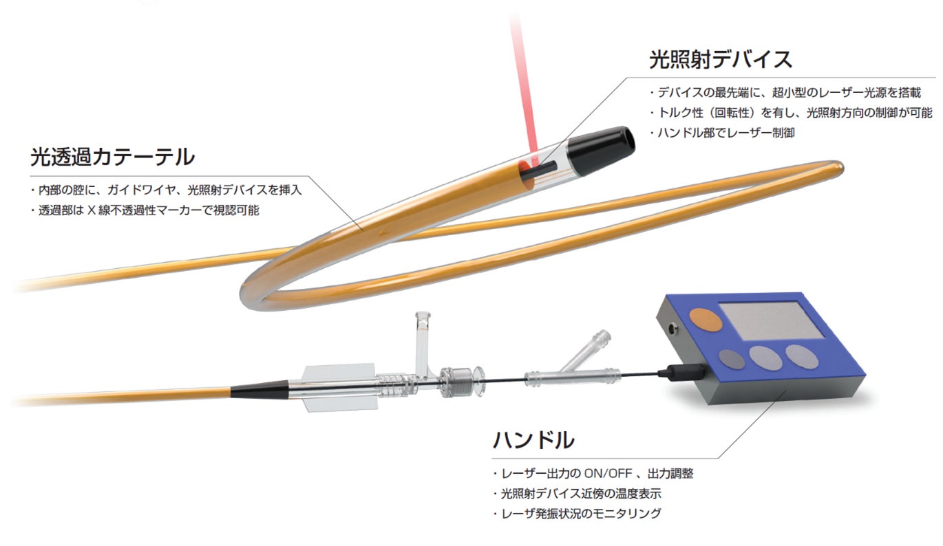 イルミメディカル株式会社(本社:愛知県名古屋市、代表取締役CEO:塚本俊彦 以下 イルミメディカル)と日亜化学工業株式会社(本社:徳島県阿南市上中町岡491番地、代表取締役社長:小川裕義、以下、「日亜化学」)は、両者が保有する「カテーテル型光治療技術」と「次世代レーザー光源技術」を組み合わせた血管内レーザー照射システムの共同開発を進めています。