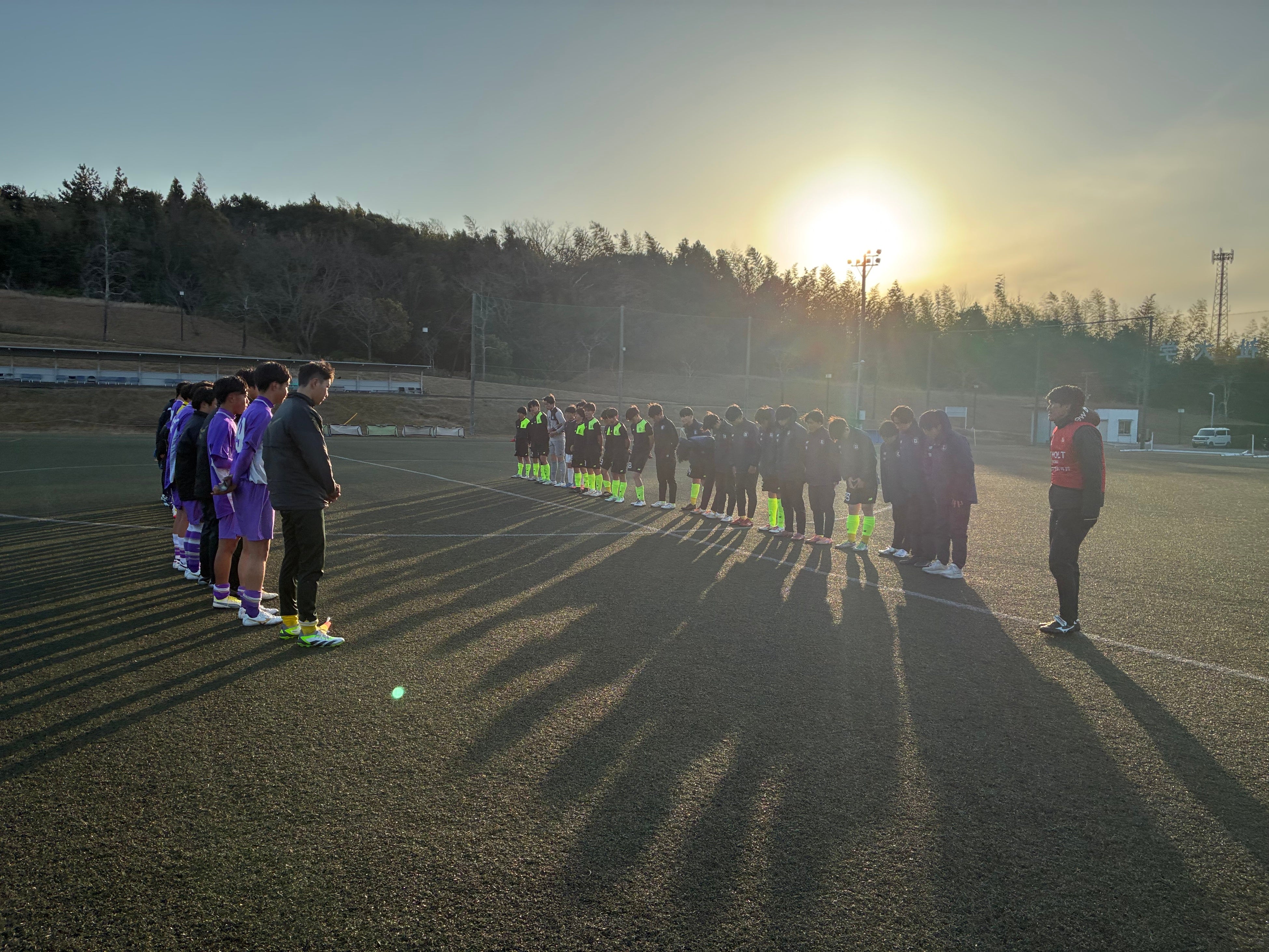 1日目は、日本福祉大学付属高校 男子サッカー部との練習試合を実施しました。普段とは異なる環境での試合を通じて、選手たちは実戦感覚を高めながら互いに切磋琢磨しました。試合後は宿泊施設にて夕食をとり、その後チームミーティングを行い、試合の振り返りや翌日のトレーニングに向けて意識を高めました。