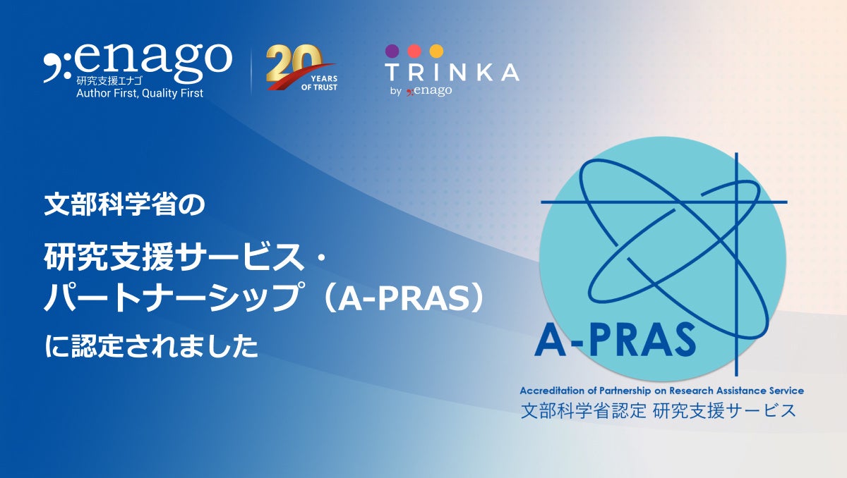 研究支援エナゴの3つのサービス・ツールが文部科学省「研究支援サービス・パートナーシップ認定制度(A-PRAS)」の認定サービスに選ばれました