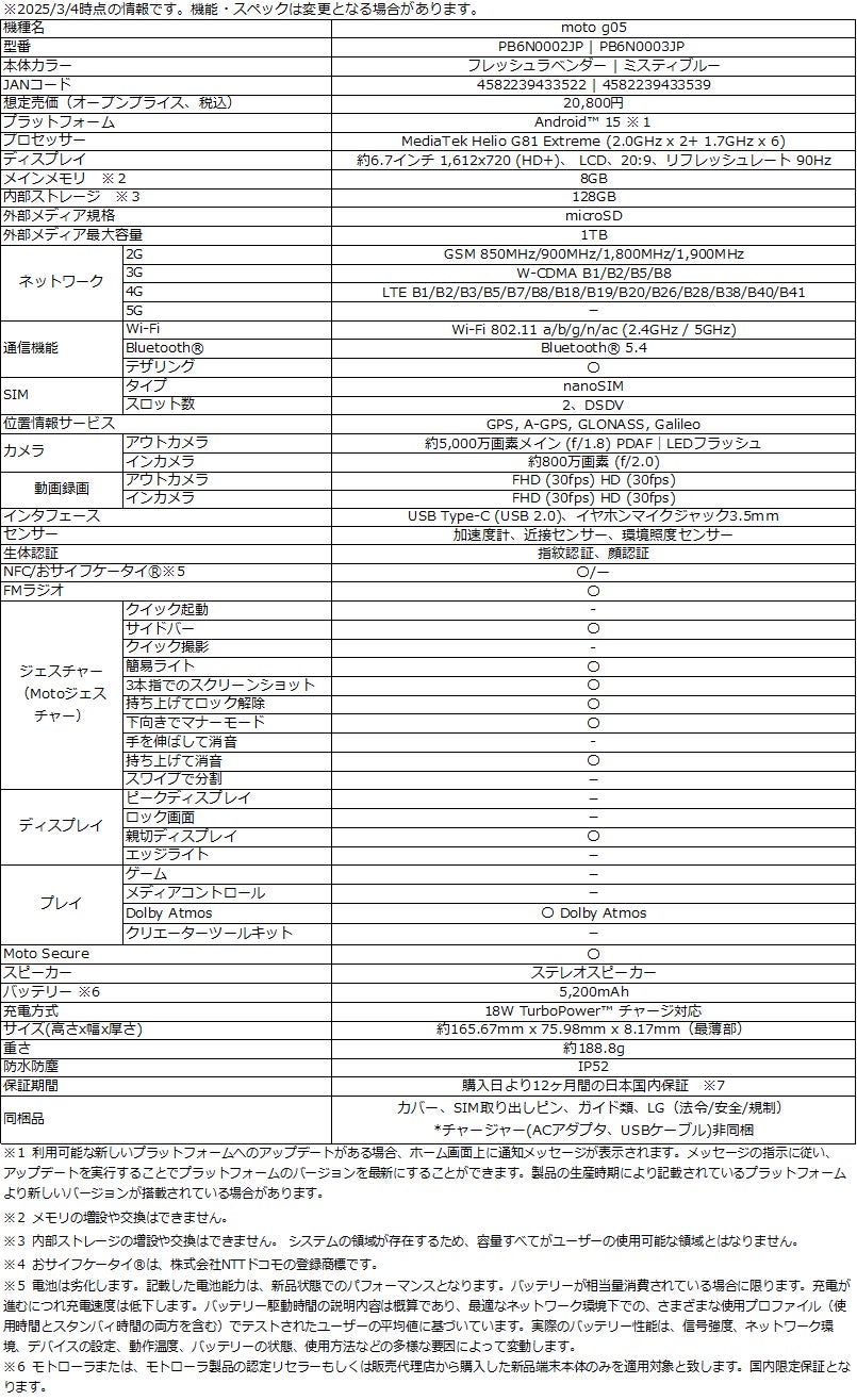 moto g05は2025年3月14日より、国内各チャネルで販売開始予定です。SIMロックフリーでご使用いただけます。