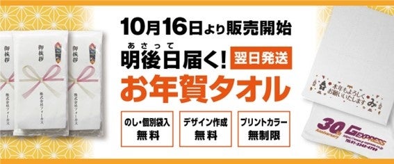 注文を受けた翌々日にお届けできるスピード作成を実現!!お年賀タオル 10月16日販売開始!