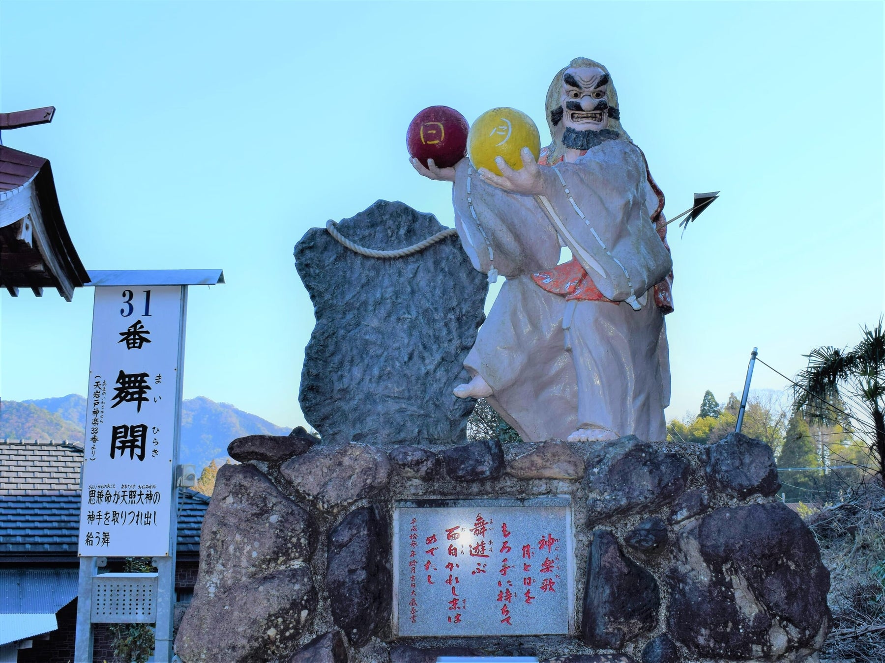 このお祭りでは、伝統の「夜神楽」とともに、神話像の迫力を間近でご覧いただけますので、ぜひ足をお運びください。