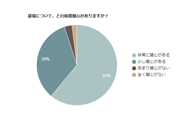 内訳は「非常に関心がある」が61%、「少し関心がある」が34%と、大多数が節電について関心があることが分かりました。