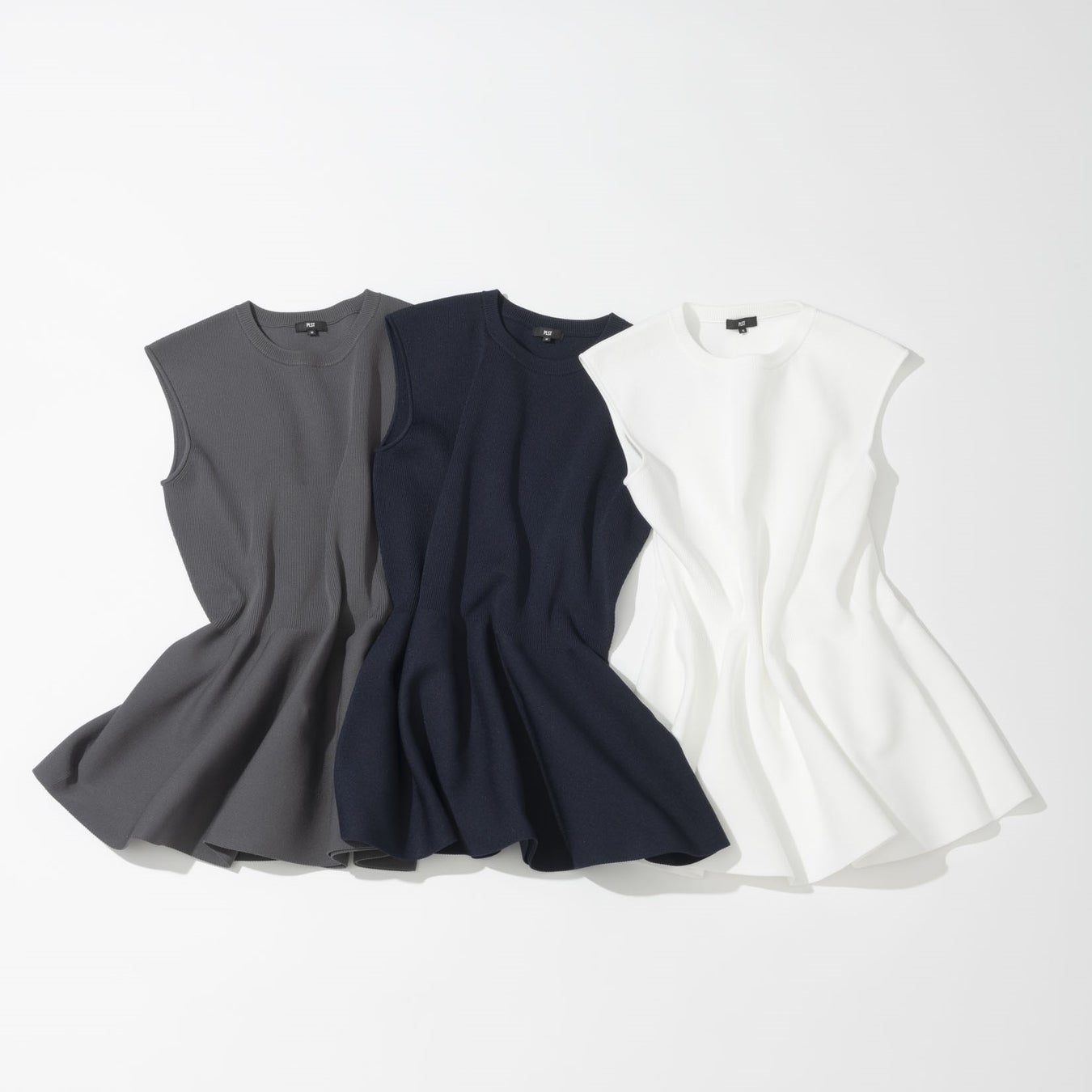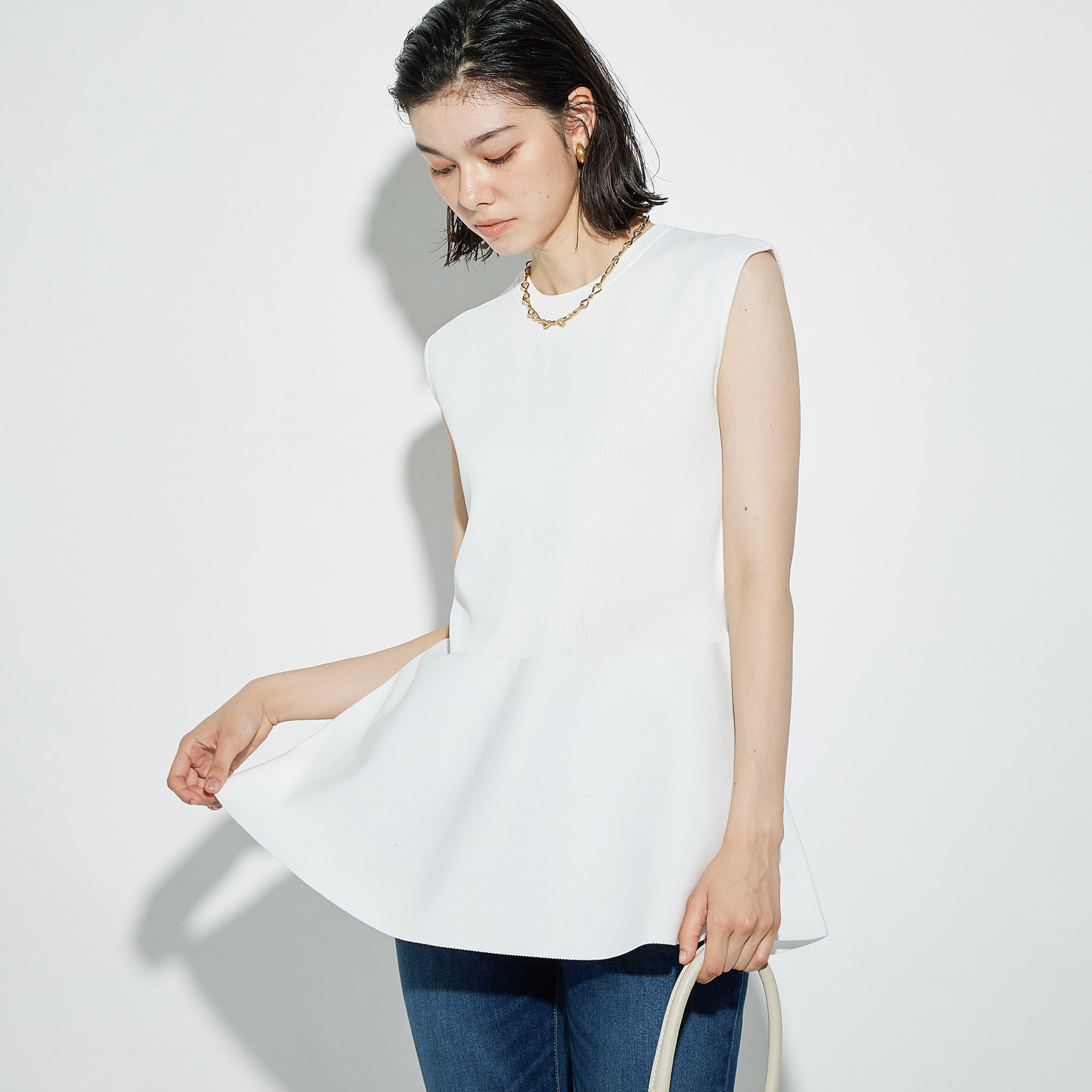 ■華やかな印象を演出するペプラムシルエットのセーターは、ノースリーブで新登場