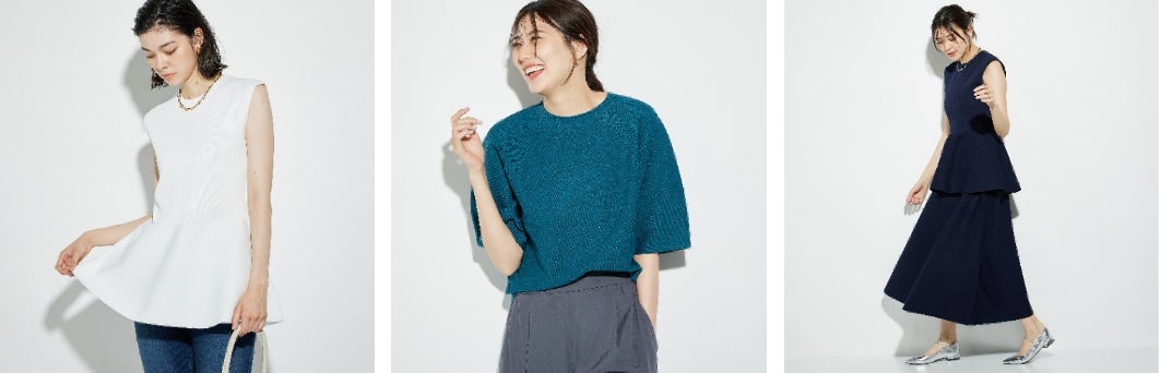 プラステの人気シリーズ「ホールガーメント®ニット」から、夏向けにアップデートしたペプラムセーターなど新作アイテム3種を6月17日(月)より全店で発売開始