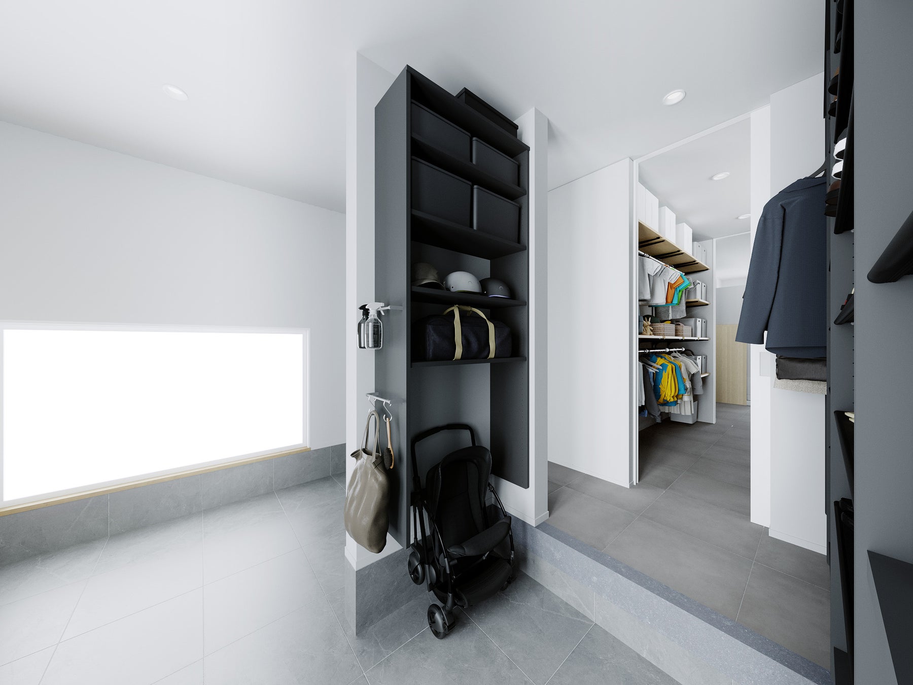 玄関をもっとスタイリッシュに、機能的に。ダークグレー色のⅡ型シューズクローク。