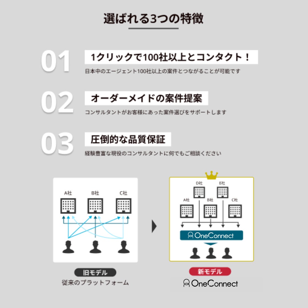 従来、フリーコンサルタントの案件探しには複数のエージェントとの個別のやり取りが必要で、登録・管理に多くの時間と労力を要していました。本サービスでは、OneConnect上に希望条件を登録するだけで、一度の手続きで100社以上のエージェントを通じた案件紹介が可能となります。これにより、個別のやり取りが不要となり、案件探しの手間を大幅に削減します。
