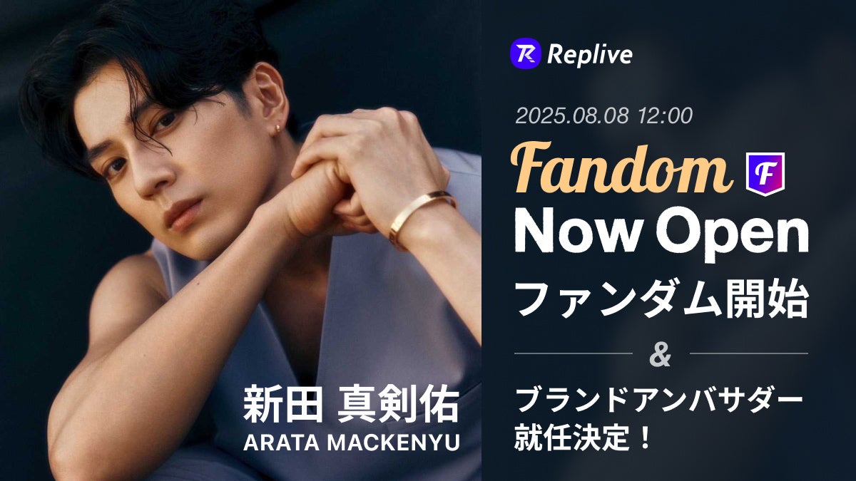 ファンダムアプリ「Replive(リプライブ)」を運営するReplive株式会社(本社:千葉県浦安市、代表取締役CEO:飯野 太治朗、URL:https://replive.jp/)は、2025年8月8日(金)より、俳優の新田真剣佑さんが「Replive」のアンバサダーとして参画し、ファンダム公開を開始することをお知らせいたします。